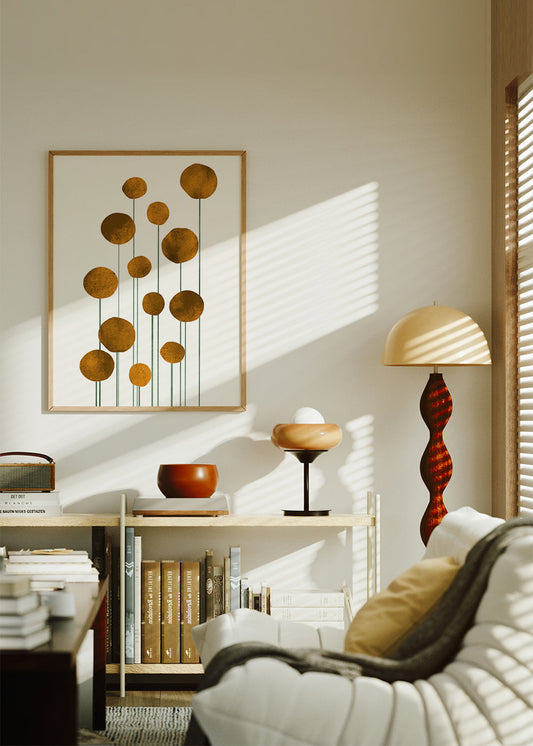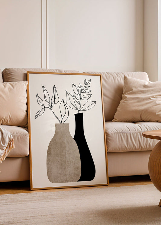 Room decoration with framed prints and wall art