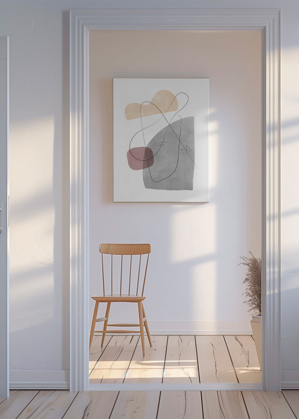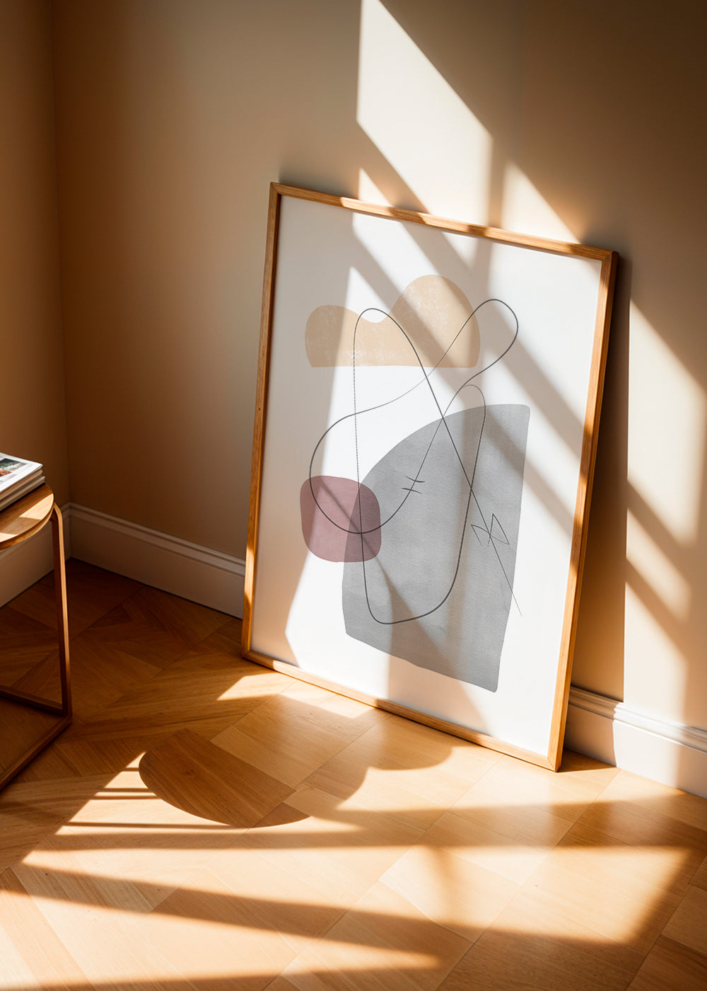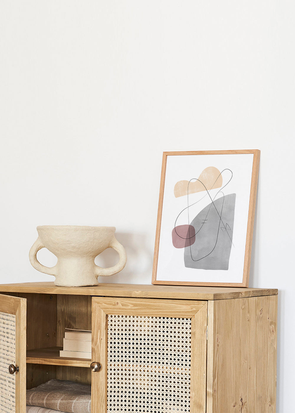 This print from our selection of geometric wall art and prints, by Nouveau Prints, with grey, and with vertical layout. This piece with abstract shapes is perfect for pairing with other abstract art and geometric prints. Get swept away by art.