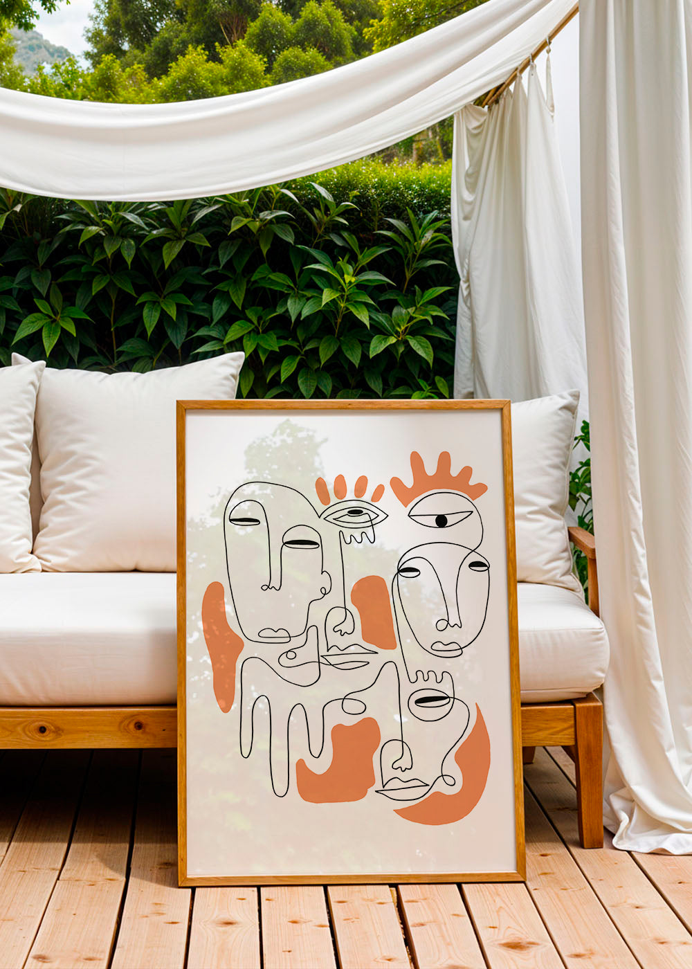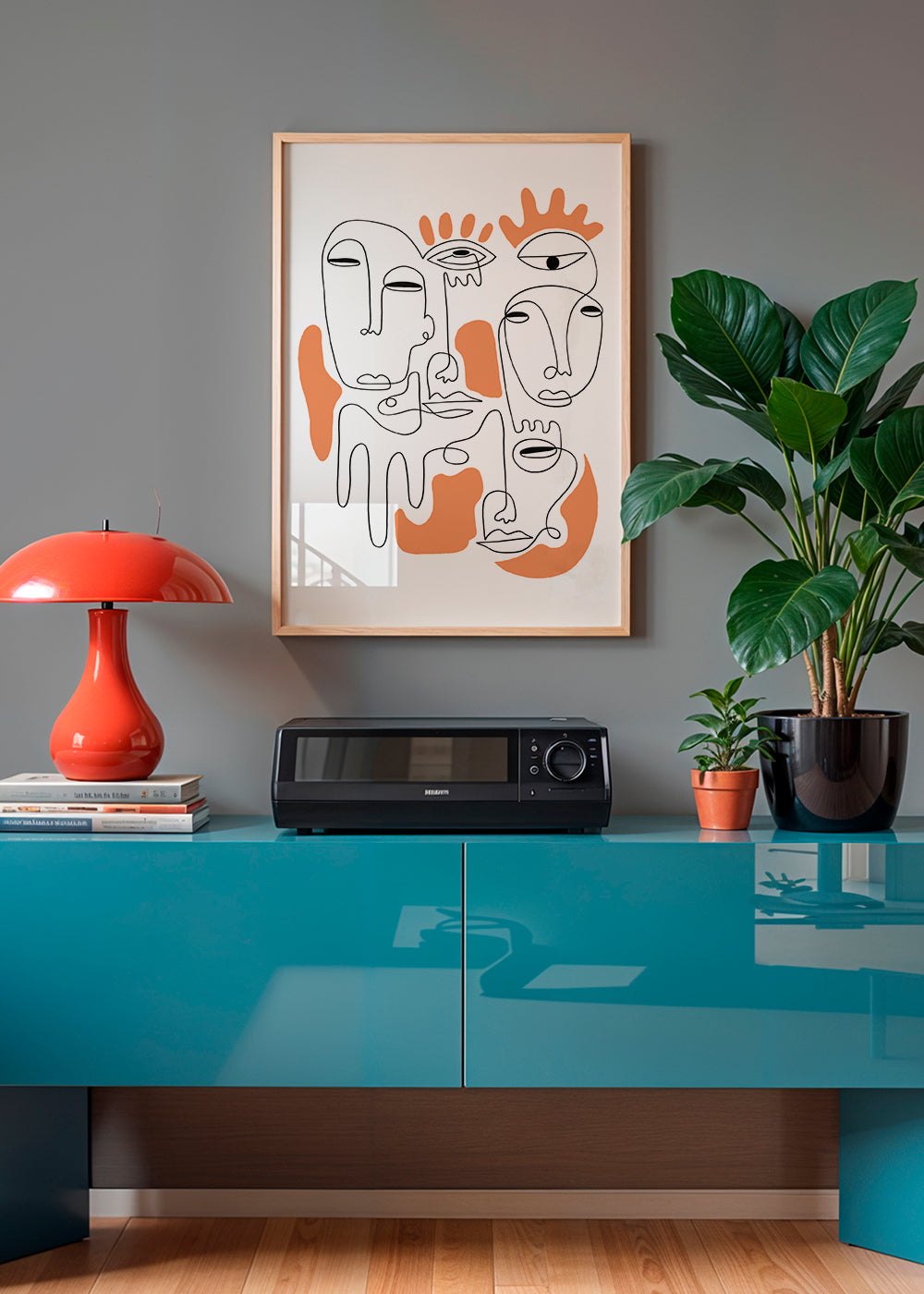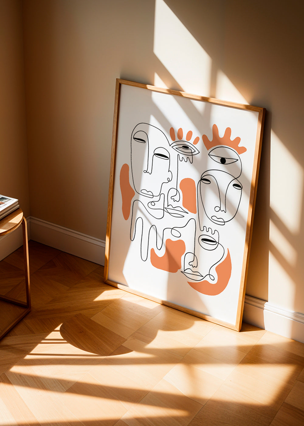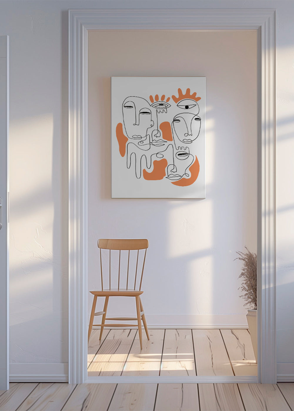 This design from the portrait faces posters series, from the mind of Shatha Dafai, with orange pigments, and with vertical layout. Abstract art awakens our minds and makes us reflect on the meaning of the pieces. Elegant walls for chic homes.