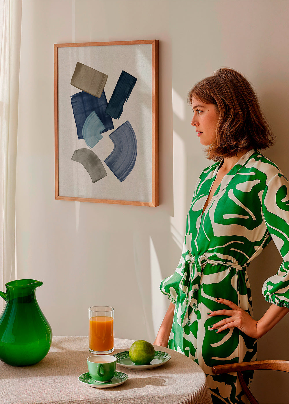 Beautiful piece from our repertoire of geometric wall art and prints, made by Orara Studio, with blue tones, and facing vertically. This piece with abstract shapes is perfect for pairing with other abstract art and geometric prints. This is the print your wall has been looking for.
