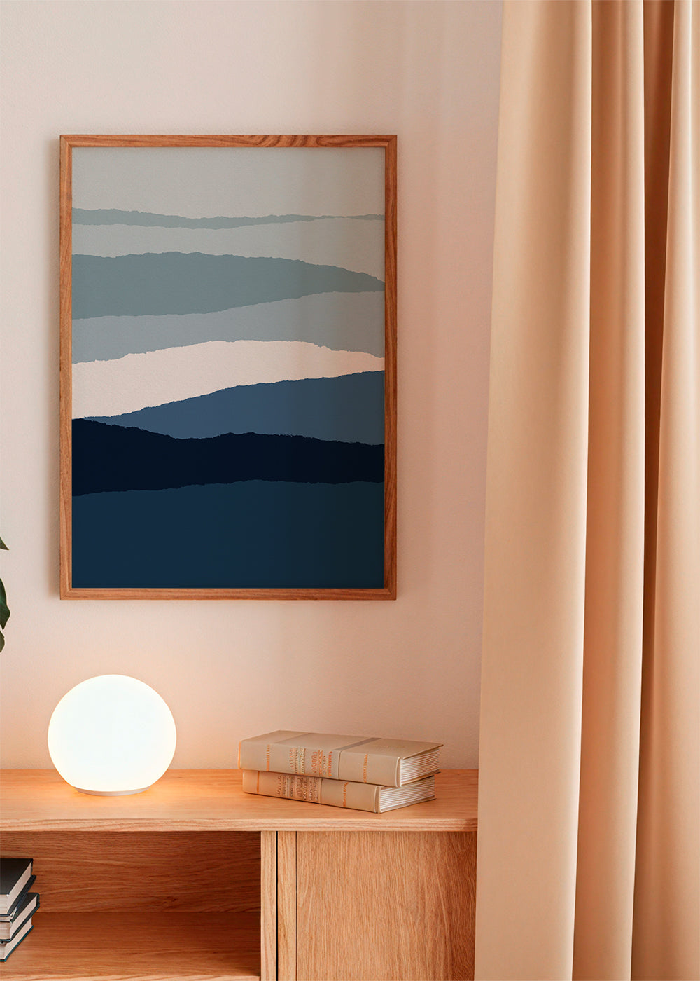 This print from our mountains wall art category, an original by Orara Studio, with blue pigments, and in vertical position. Landscape decoration brings a breath of fresh air to any room. There are no ugly or beautiful walls, just empty or full ones.
