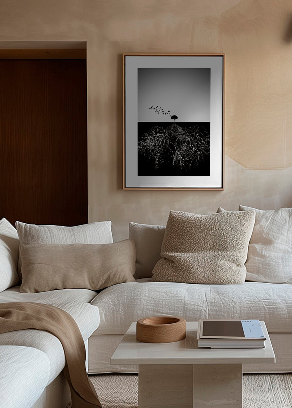 A poster from our repertoire of cactus wall art, with black and white pigments, and with vertical layout. Peace, calmness, tranquillity... Join the mindfulness decoration movement with this design. Fill your decoration with art. The white strip around the piece enhances its expressiveness.