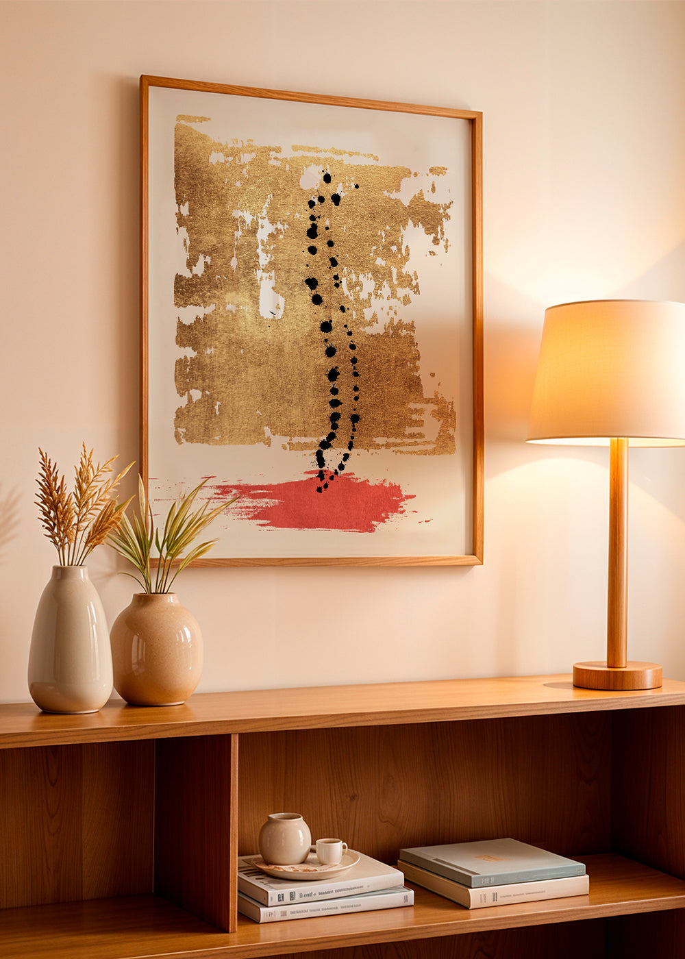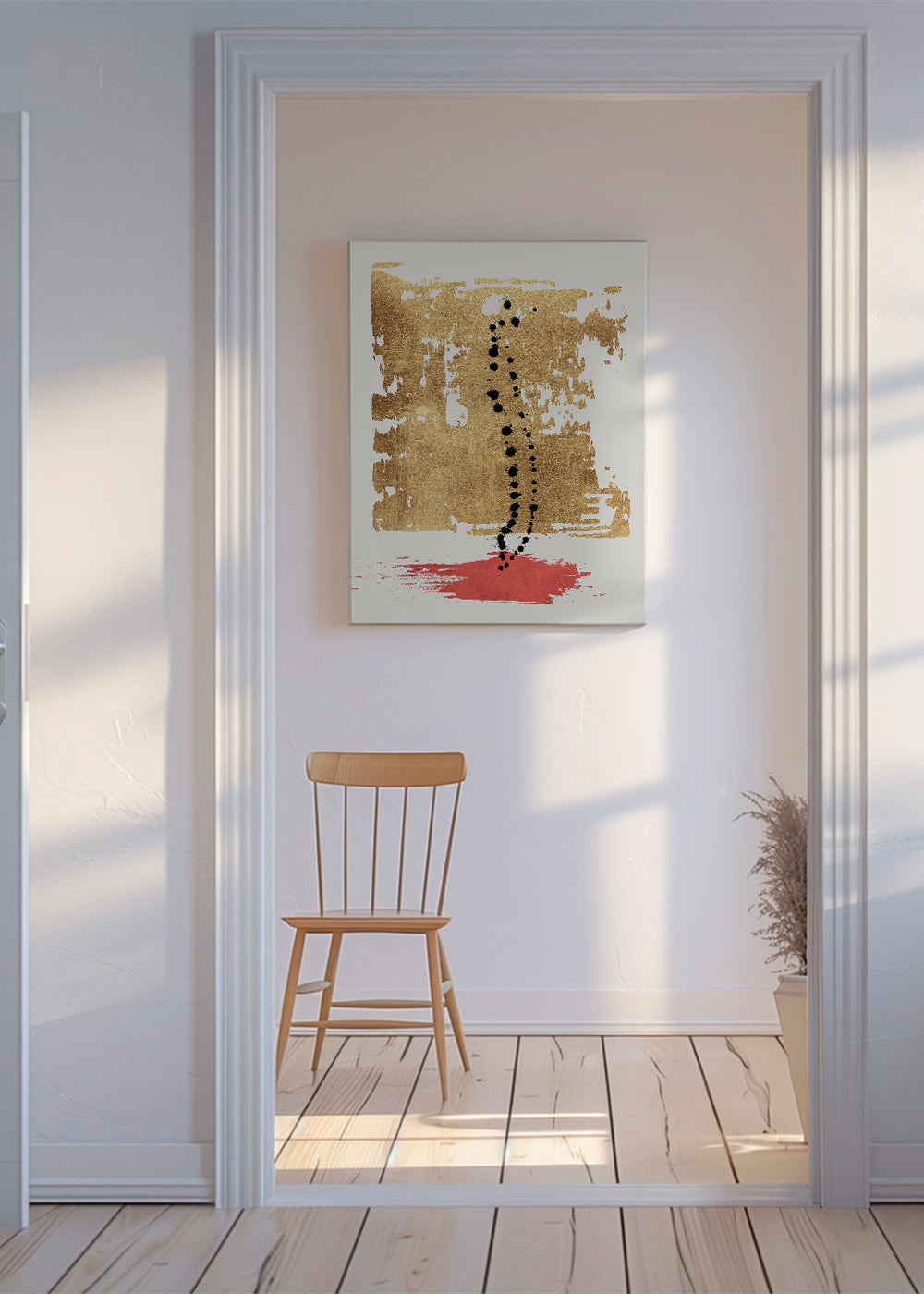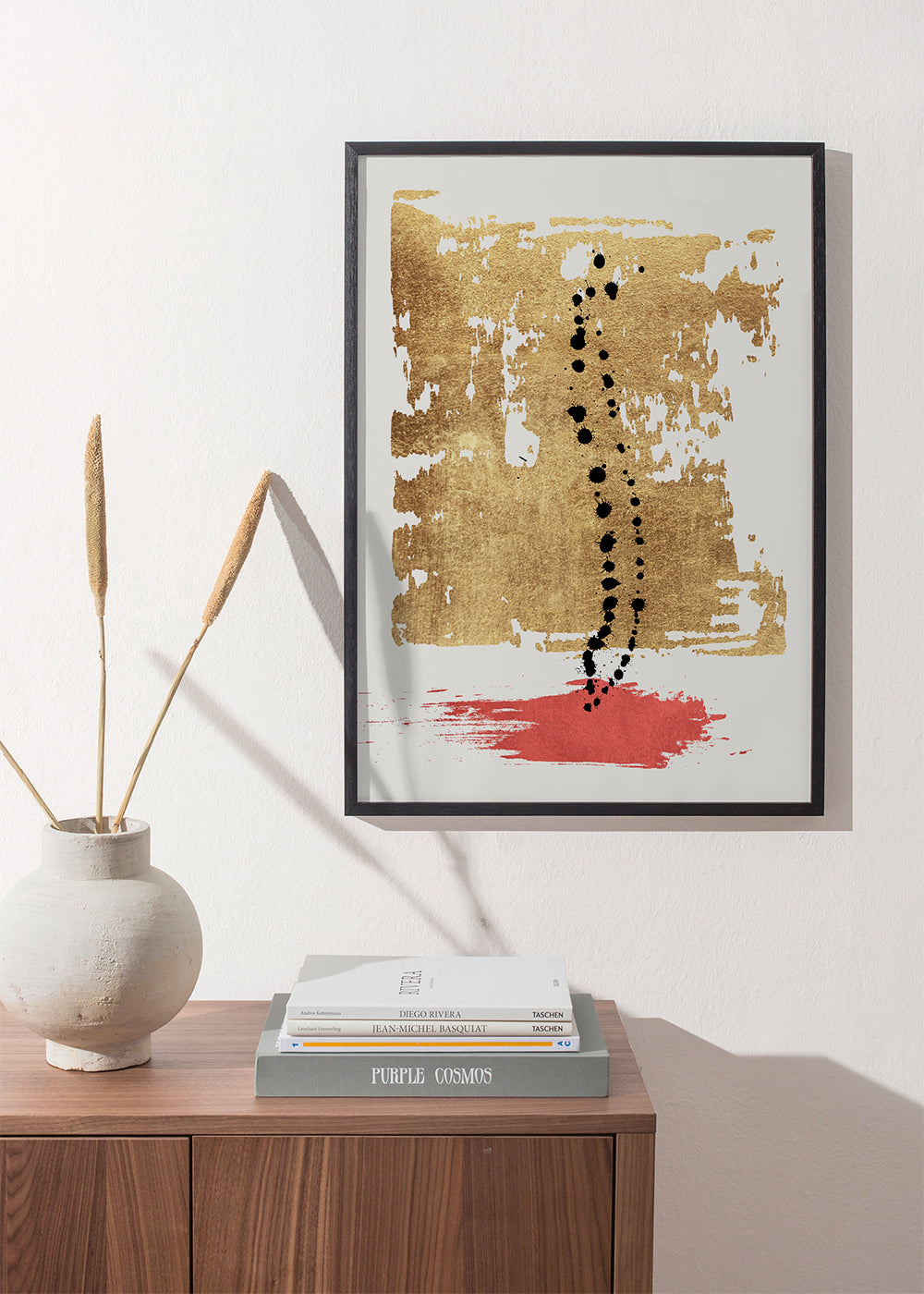 A design inspired by the collection of abstract wall art and prints, created by KUBISTIKA, with touches of red, and to hang in vertical position. Abstract art awakens our minds and makes us reflect on the meaning of the pieces. Fill your walls with prints.