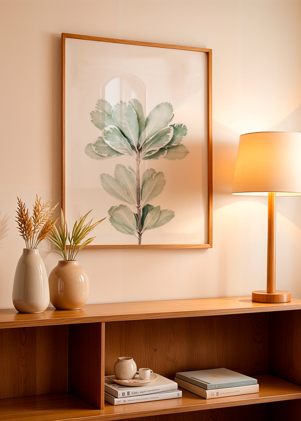 This piece from the botanical prints and wall art series, from the collection of the artist Kathrin Pienaar, with green tones, and perfect to hang vertically. Decoration with botanical prints is perfect for nature-lovers. Elegance inspired by art.