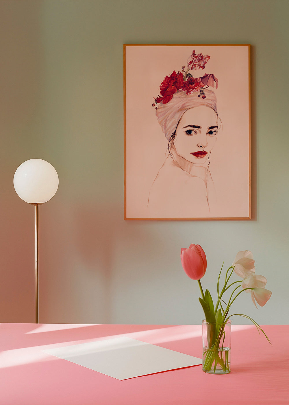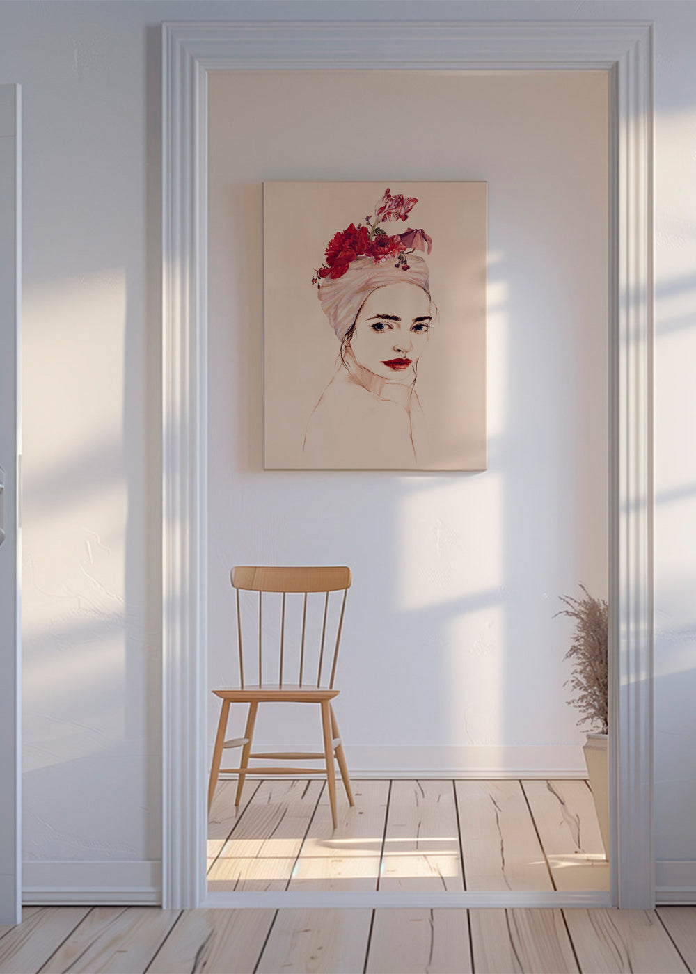 Beautiful print inspired by the collection of girls wall art, from the Sophia Novosel collection, in tones of red, and with vertical layout. The drawing is simple and clean, so you can pair it with other illustrations for an artistic composition. Dress up your walls at home