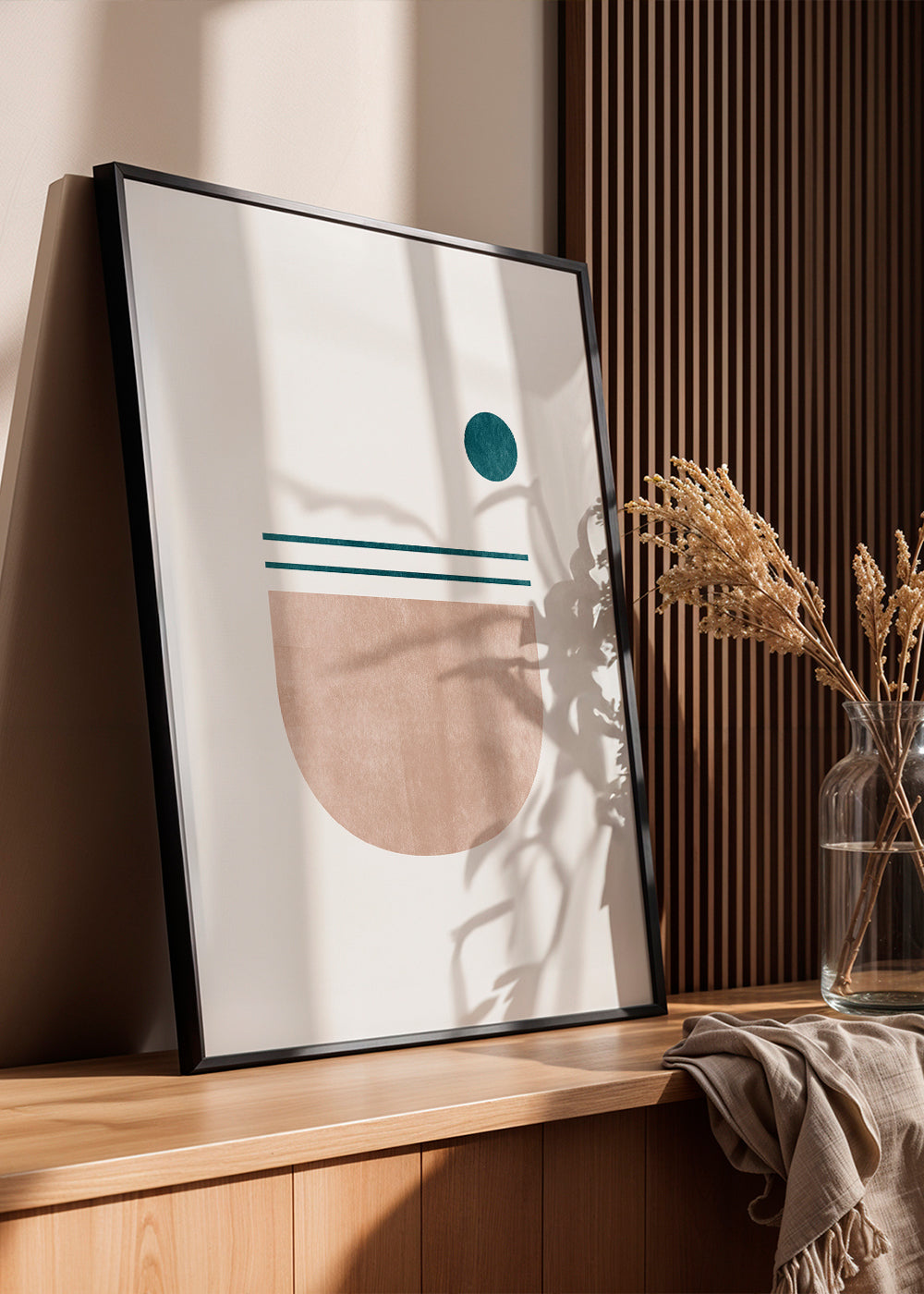 A print from our geometric wall art and prints series, from the collection of the artist Kookie Pixel, with blue, and facing vertically. Geometric art is an elegant style to decorate the walls of your home with. The final touch you were looking for.