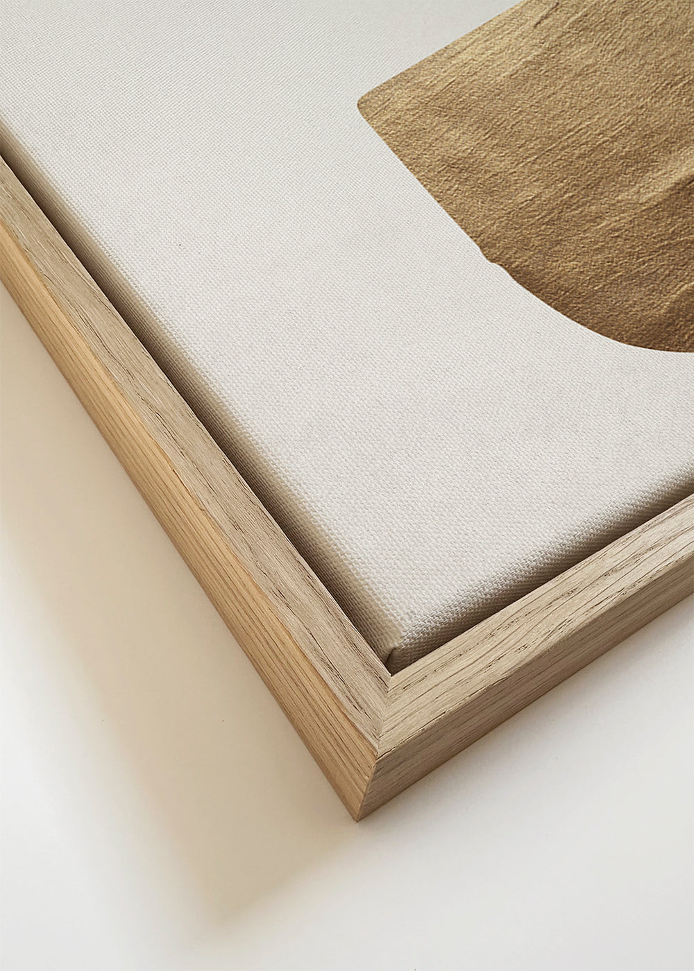 The wooden frames up to 20x28 in (included) have a width of 0.6 in and a depth of 1.2 in, while in the larger ones the width is 0.8 in and a depth of 1.2 in.