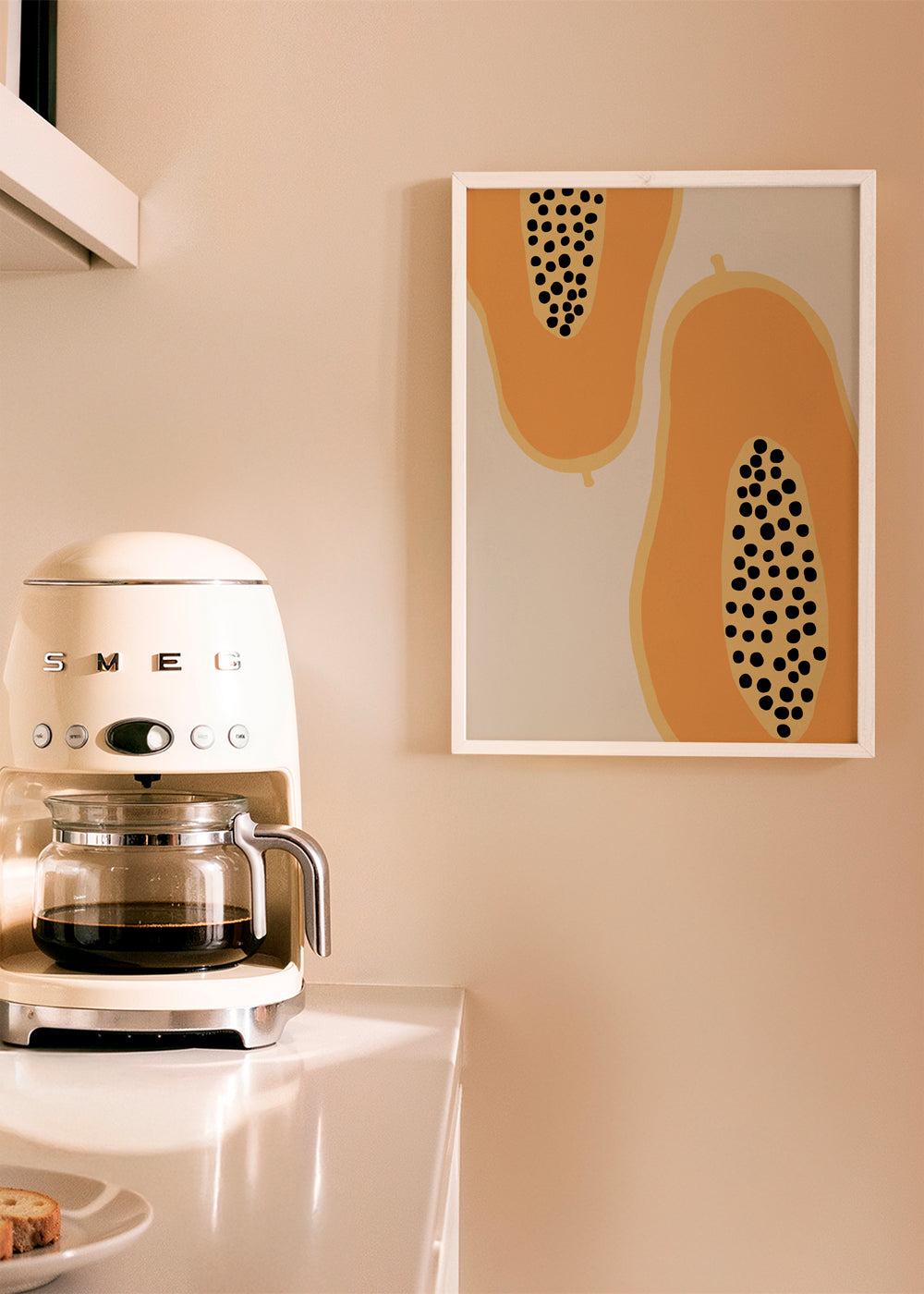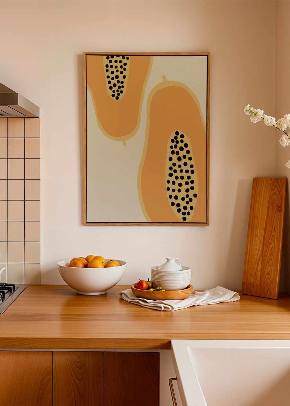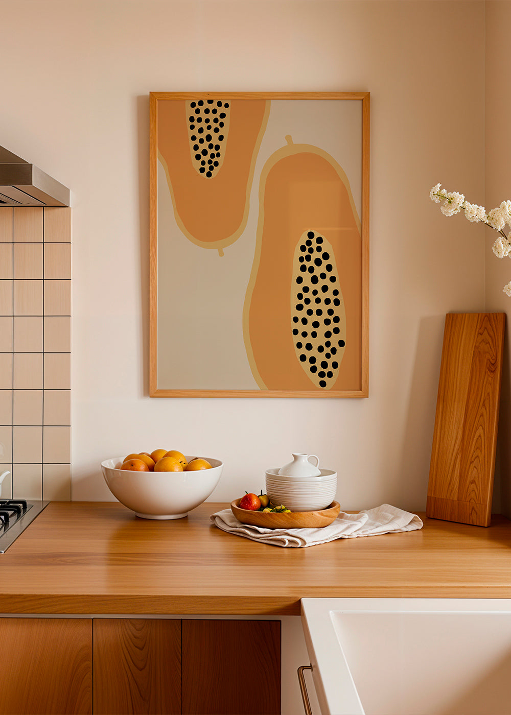 Beautiful piece from the fruit posters series, with orange pigments, and facing vertically. This piece is perfect for decorating the kitchen in your home. Create the perfect environment.