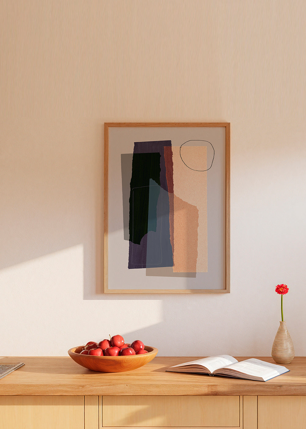 This design from our repertoire of geometric wall art and prints, by creative artist Mareike Böhmer, with tones of blue, and vertical layout. Geometric prints are a great option for decorating modern, cutting-edge spaces. An empty wall is a canvas waiting to be painted.