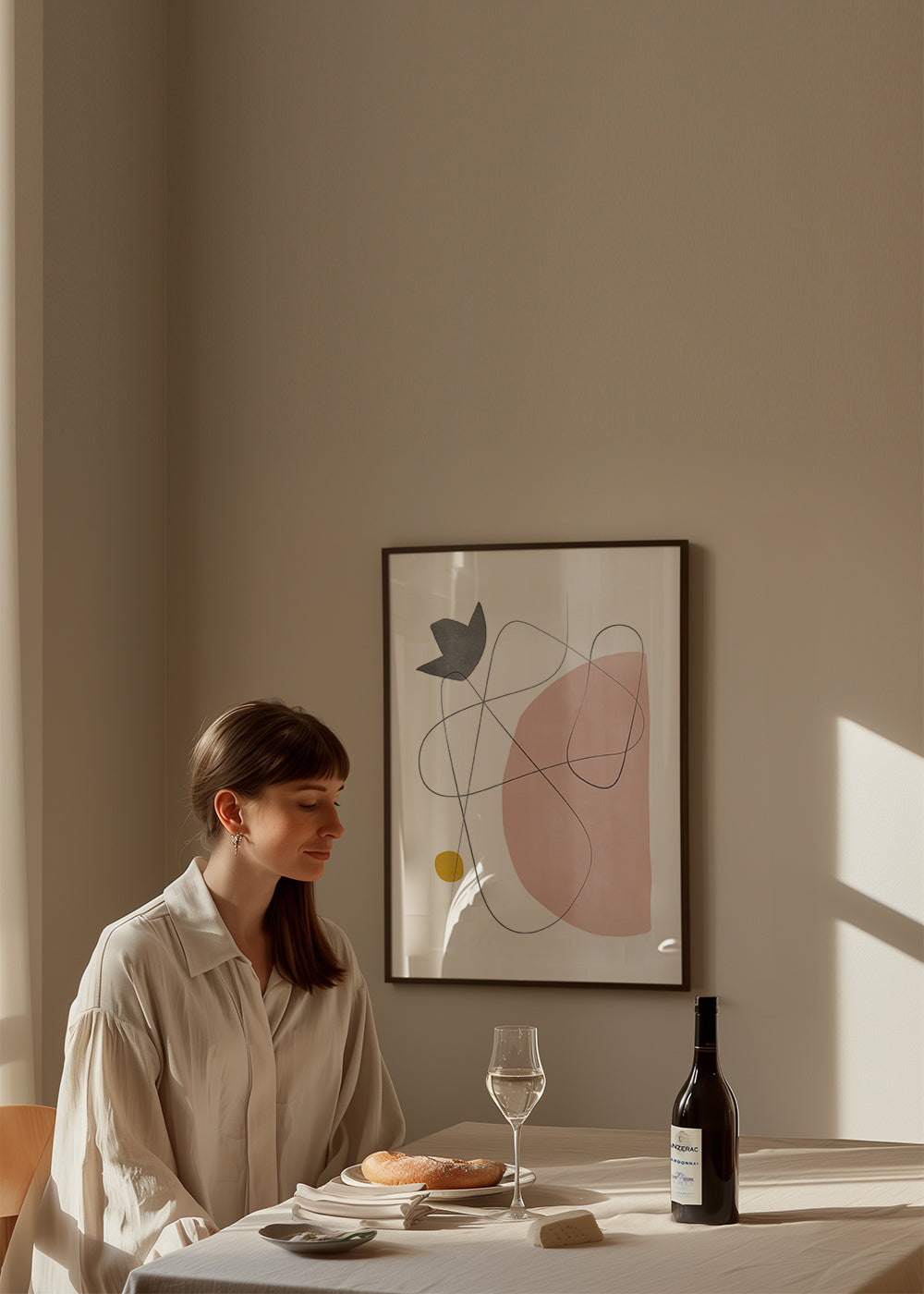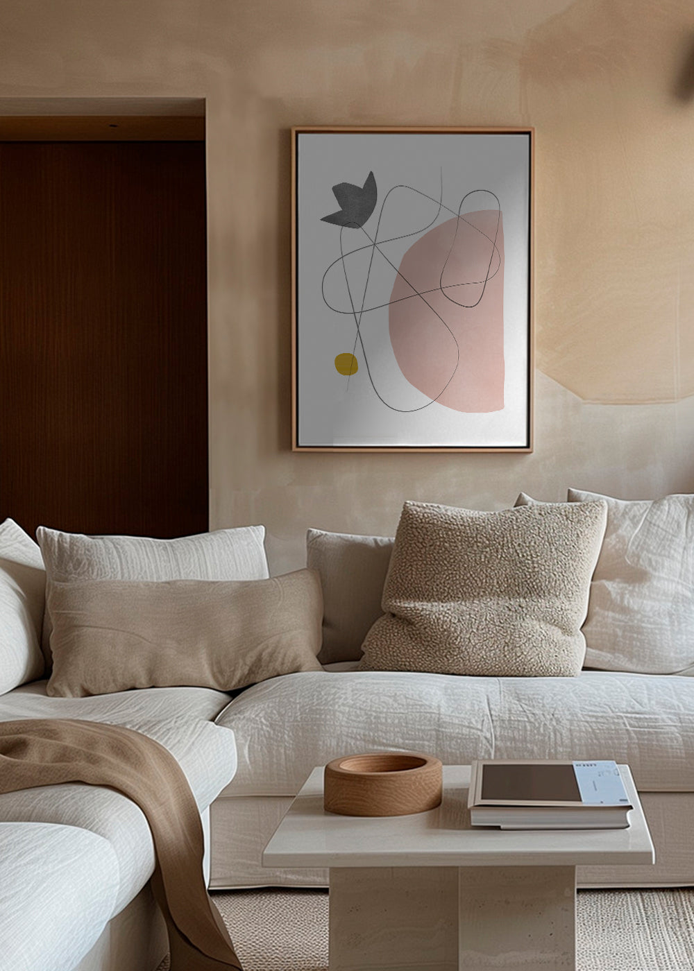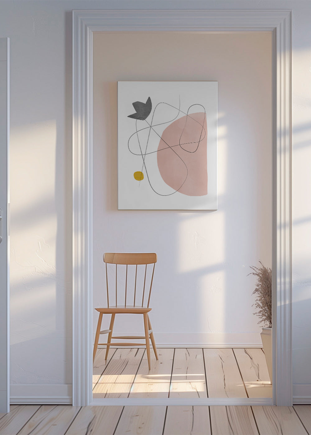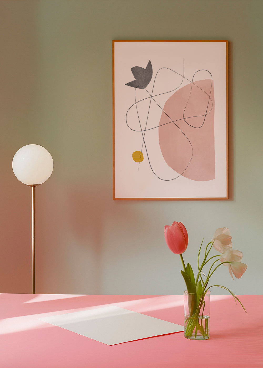 A print from our selection of geometric wall art and prints, from the Nouveau Prints collection, in tones of pink, and with vertical layout. Geometric art is an elegant style to decorate the walls of your home with. Pure art and design.