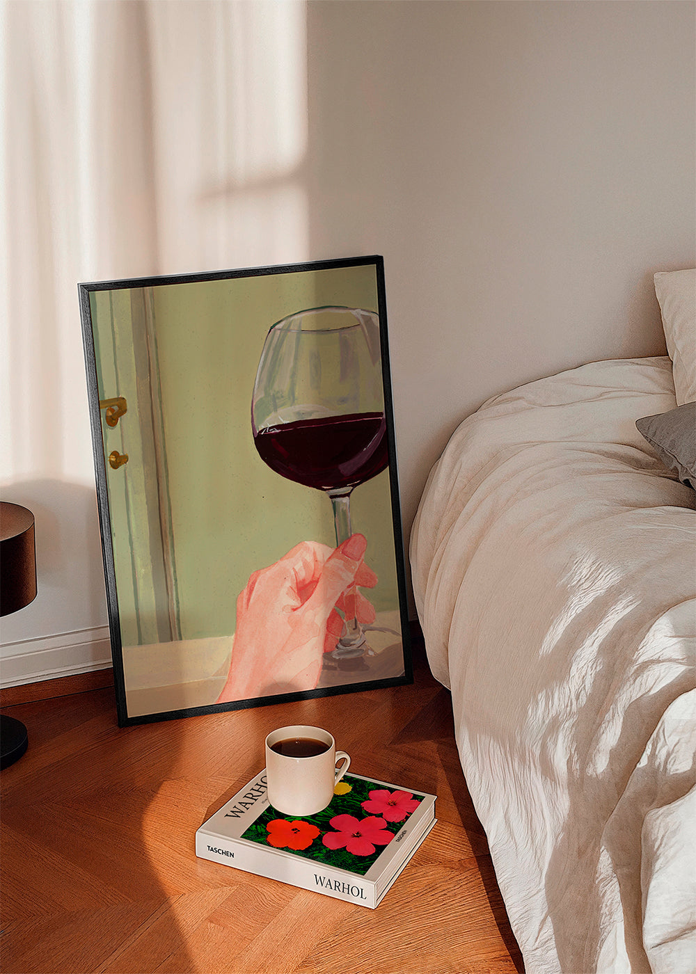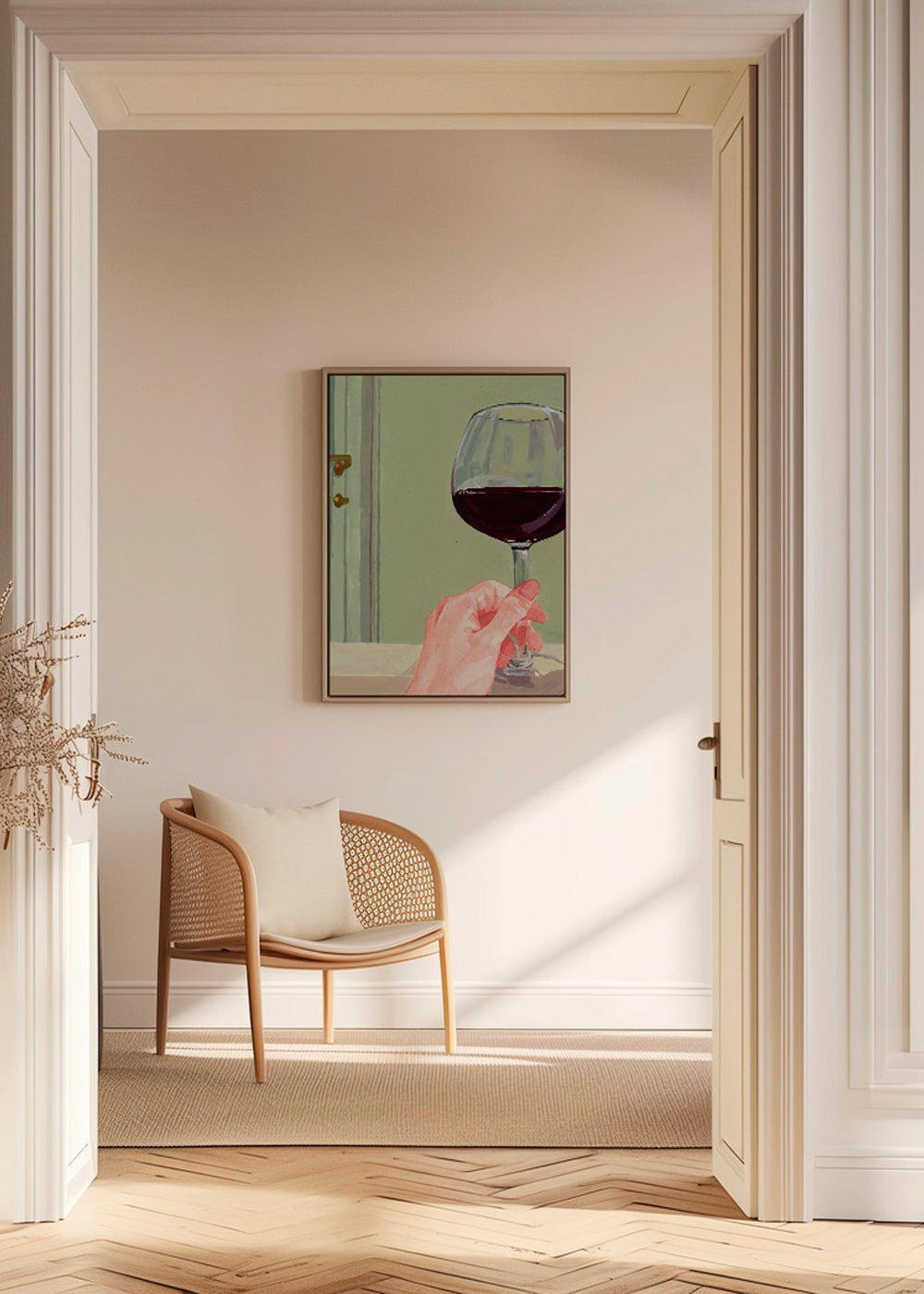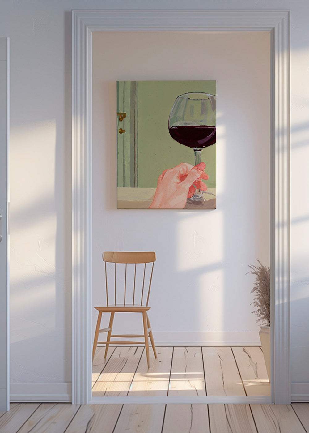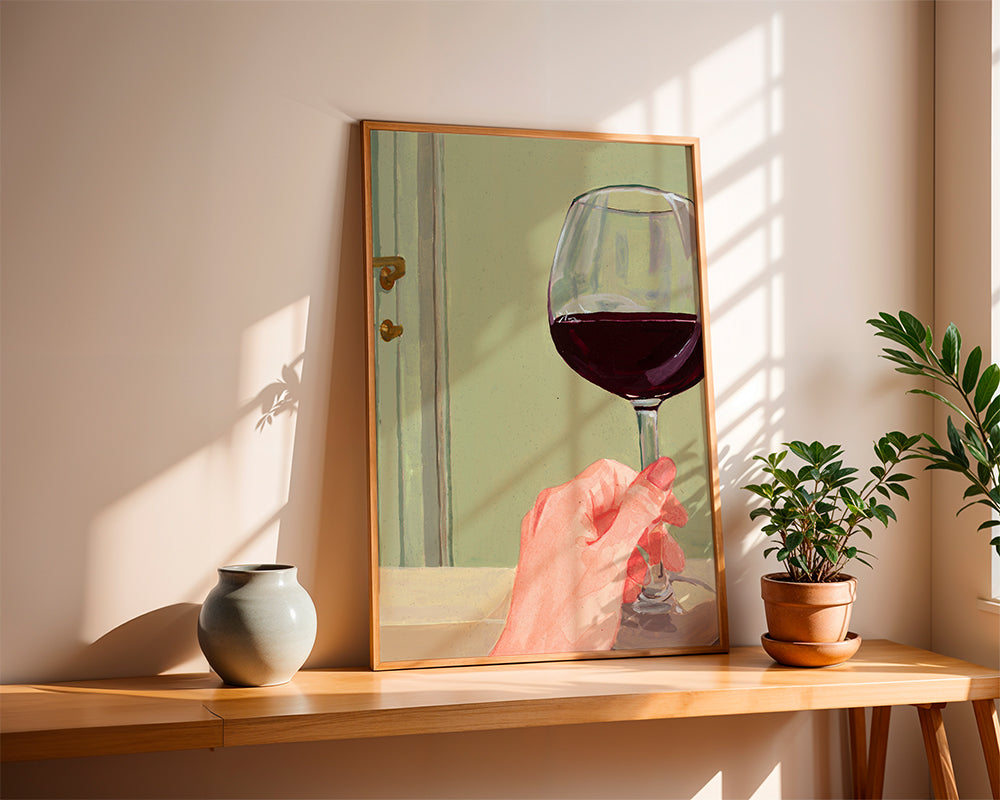 A design from our wine wall art category, made by Sophia Novosel, with red tones, and vertical layout. The kitchen can be a cosy spot, too, if you pair this design with other kitchen prints for a super chic kitchen. A new look on your walls can bring a breath of fresh air to all your decor.