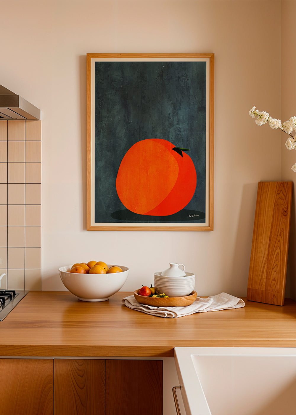 A print in the style of our vintage wall art, an original by Bo Anderson, with tones of orange, and with vertical layout. Give your style a vintage touch by pairing this print with other retro-style posters. Give your rooms a fresh look with art.