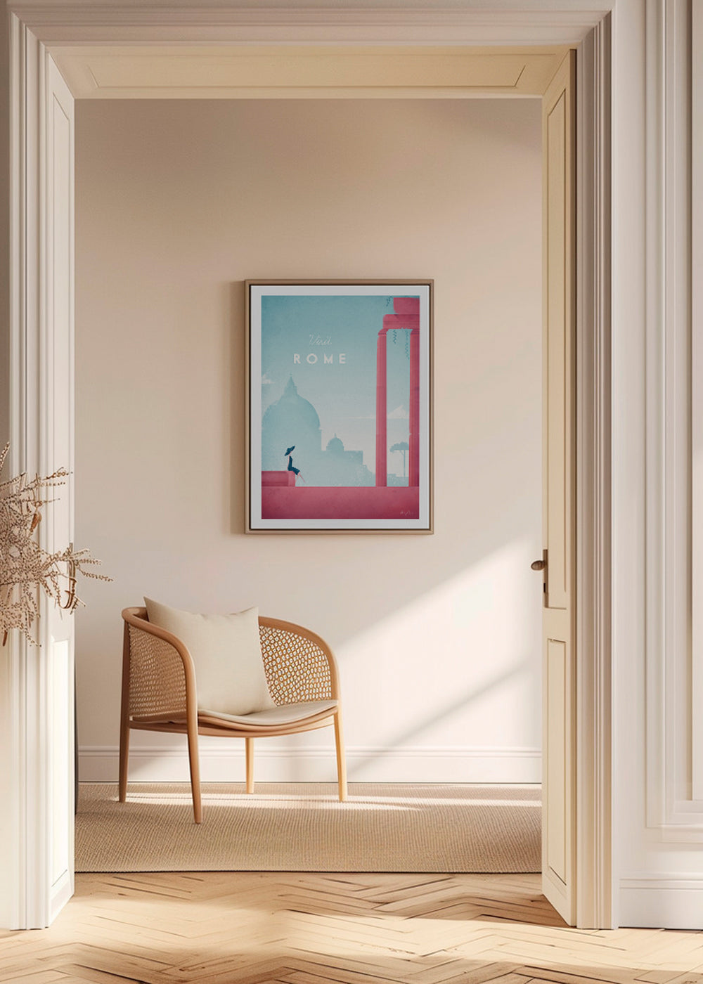 A design from our repertoire of travel posters, an original by Henry Rivers, with shades of blue, and perfect to hang vertically. If you love wandering around discovering new parts of the world, this print is for you. Dress up your walls at home