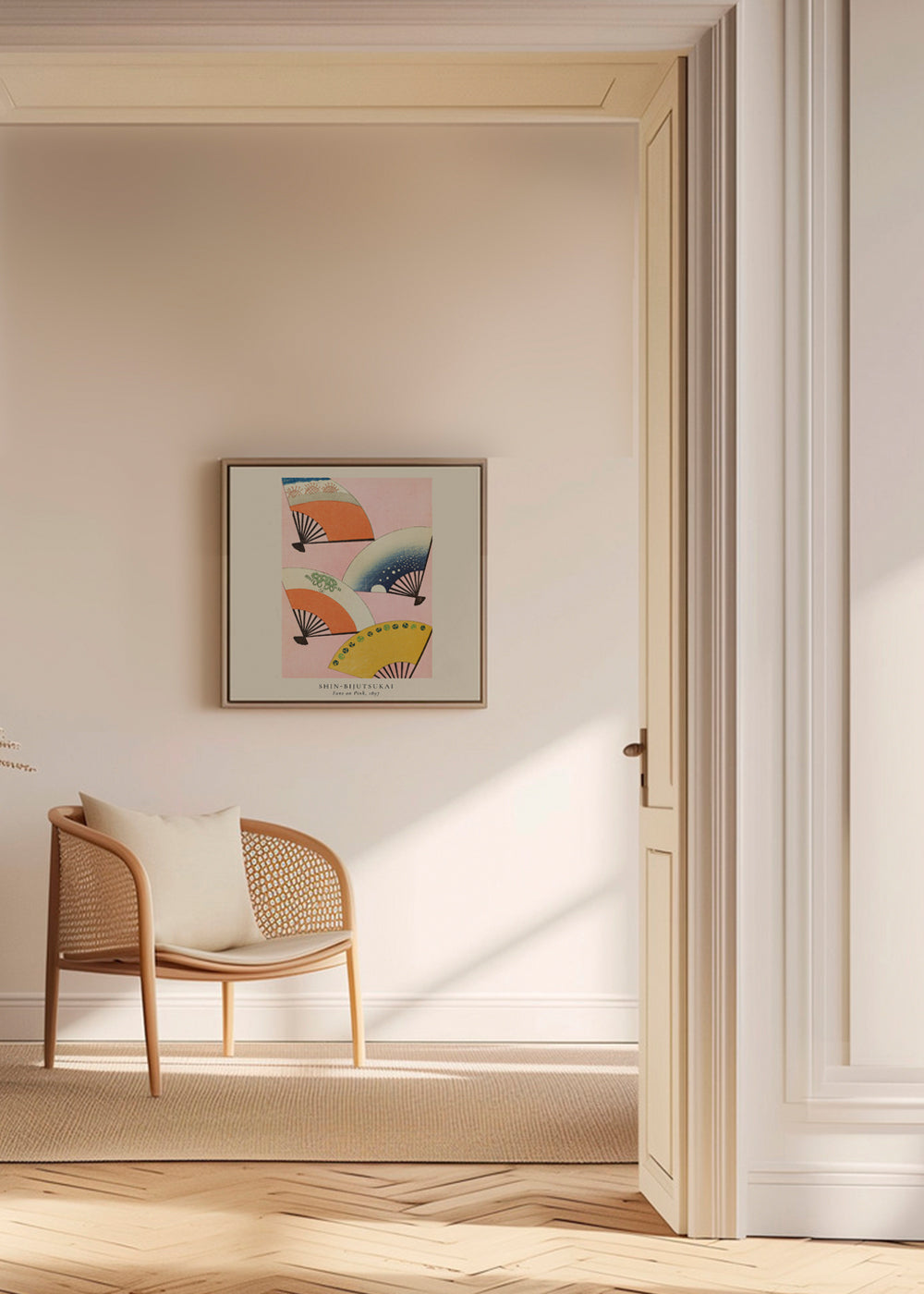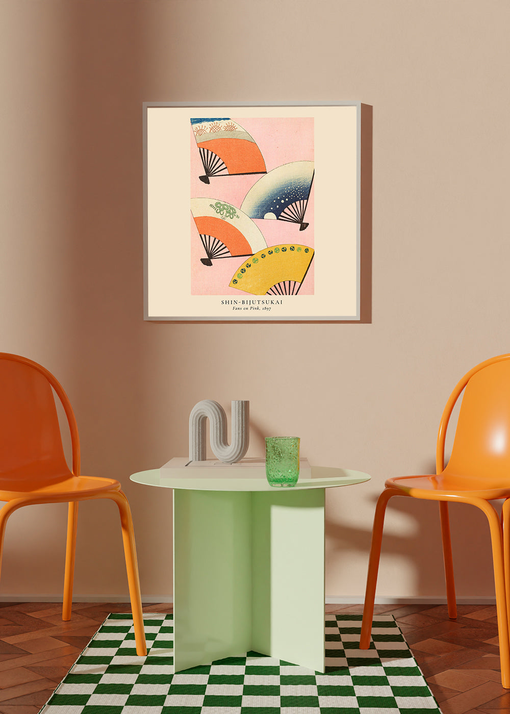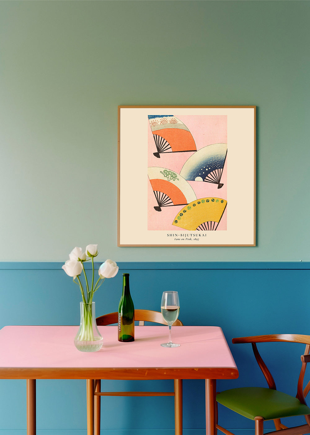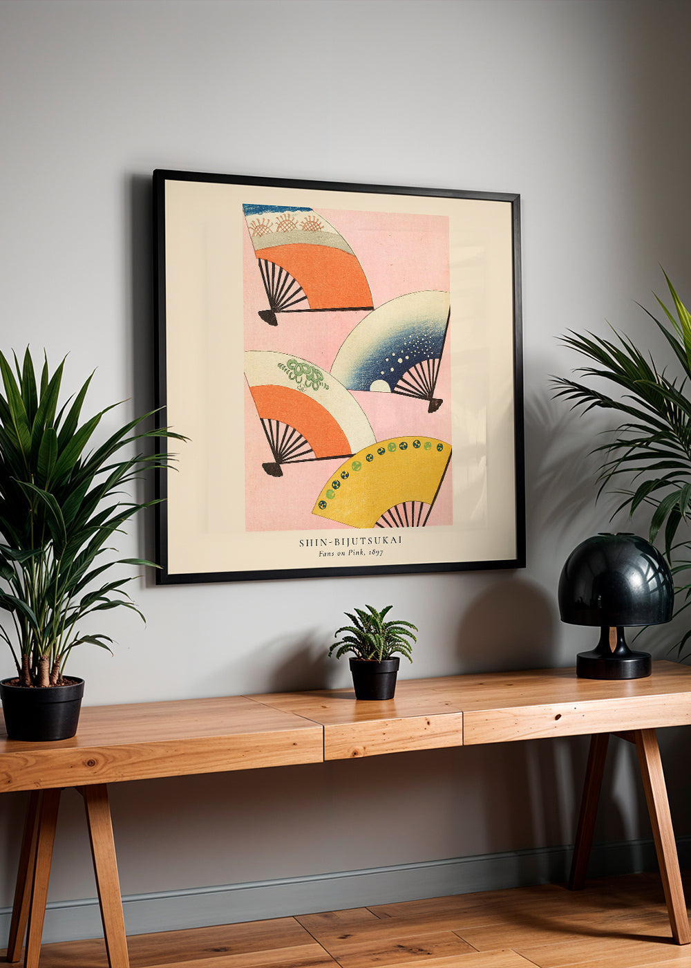 Scandinavian wall art Shin-Bijutsukai - Fans on pink - Square