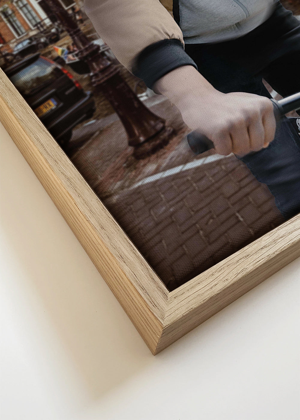 The wooden frames up to 20x28 in (included) have a width of 0.6 in and a depth of 1.2 in, while in the larger ones the width is 0.8 in and a depth of 1.2 in.