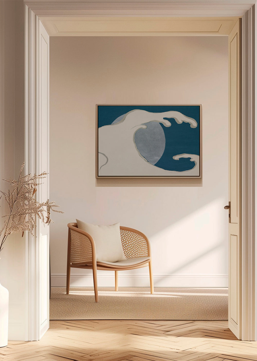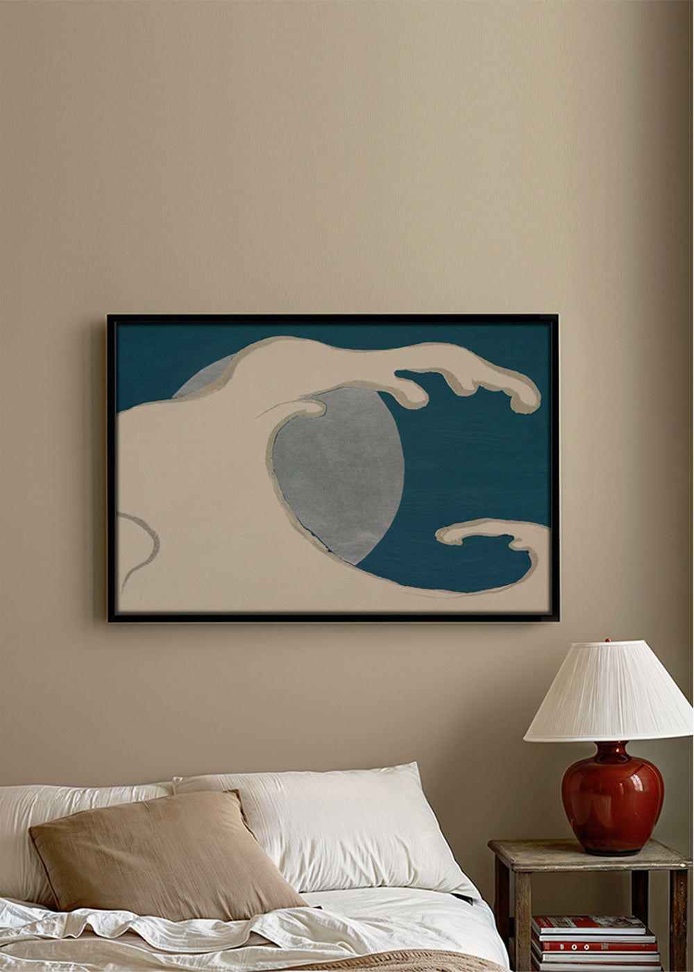 A print from our selection of japanese wall art, from the collection of the artist 1x, with tones of blue, and horizontal layout. The drawing is simple and clean, so you can pair it with other illustrations for an artistic composition. The final touch you were looking for.