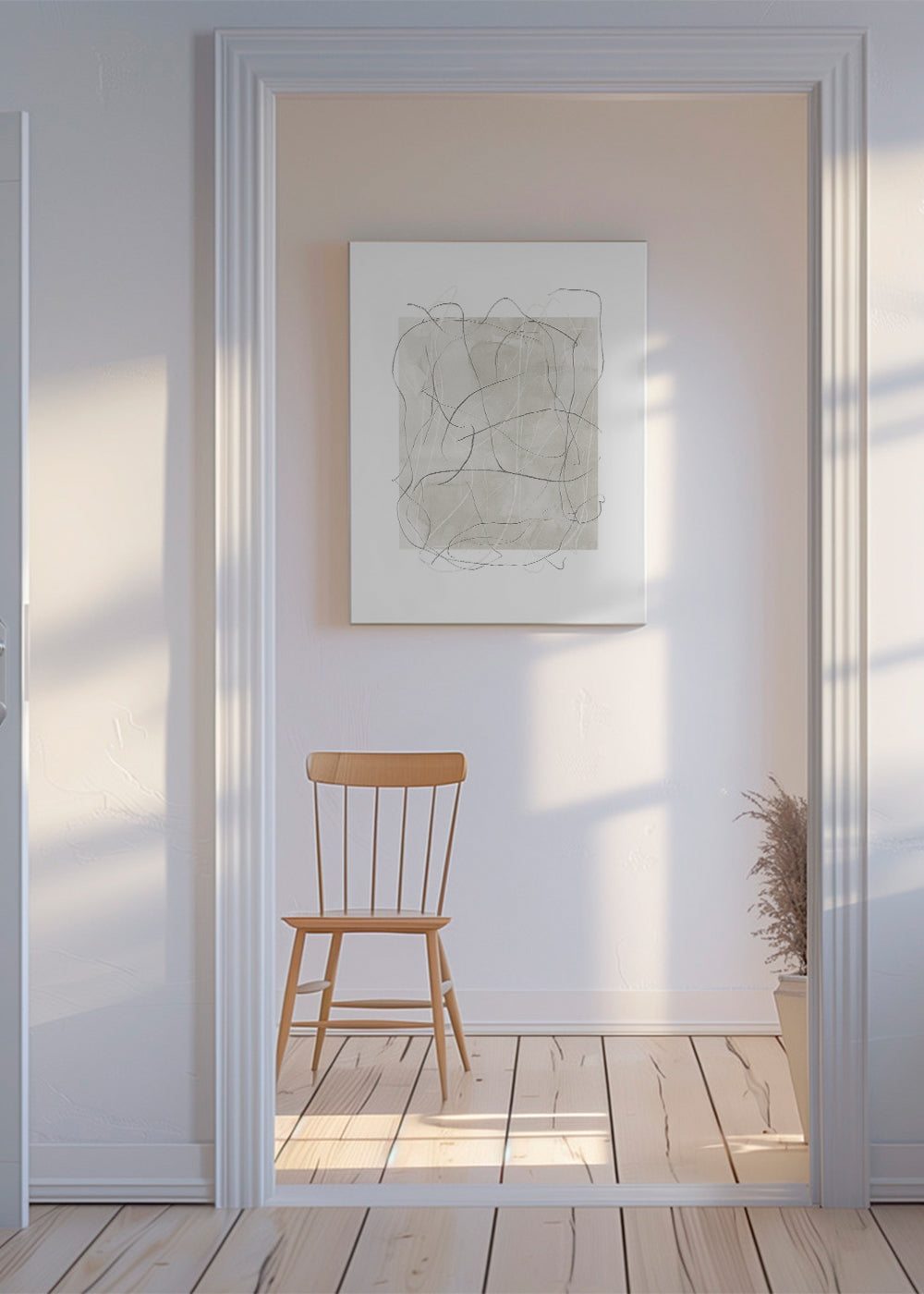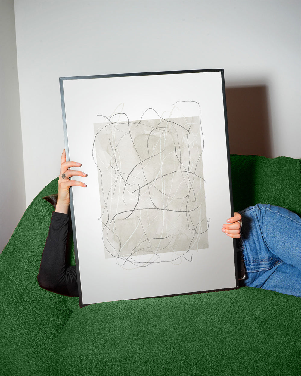 This print from our repertoire of line art prints, from the mind of Noveau Prints, with grey, and vertical layout. Abstract prints and paintings make spaces more unique. Choose the size that best fits your decor.