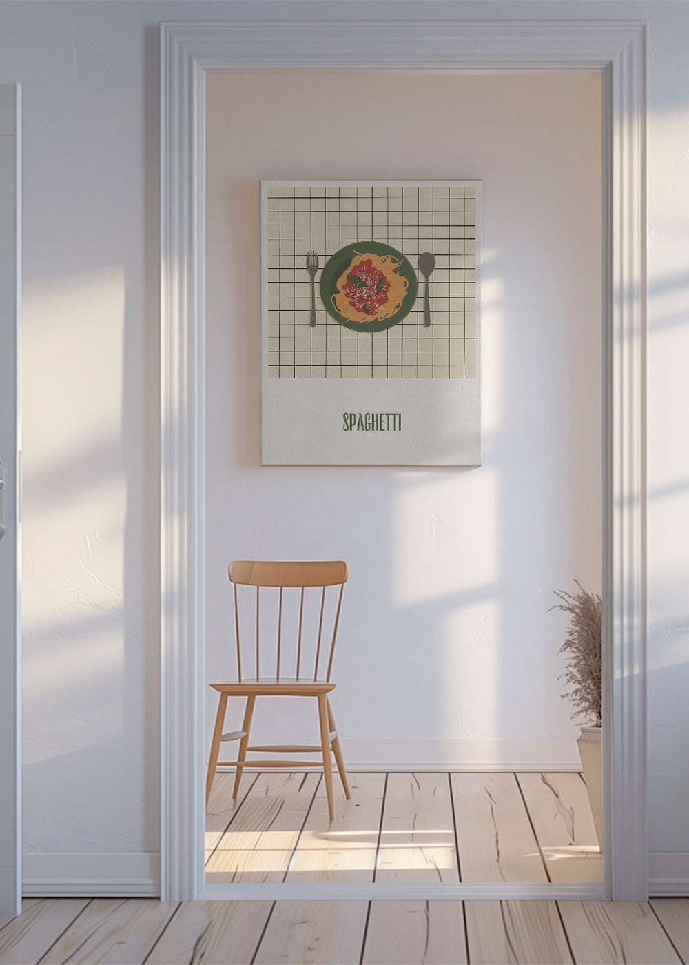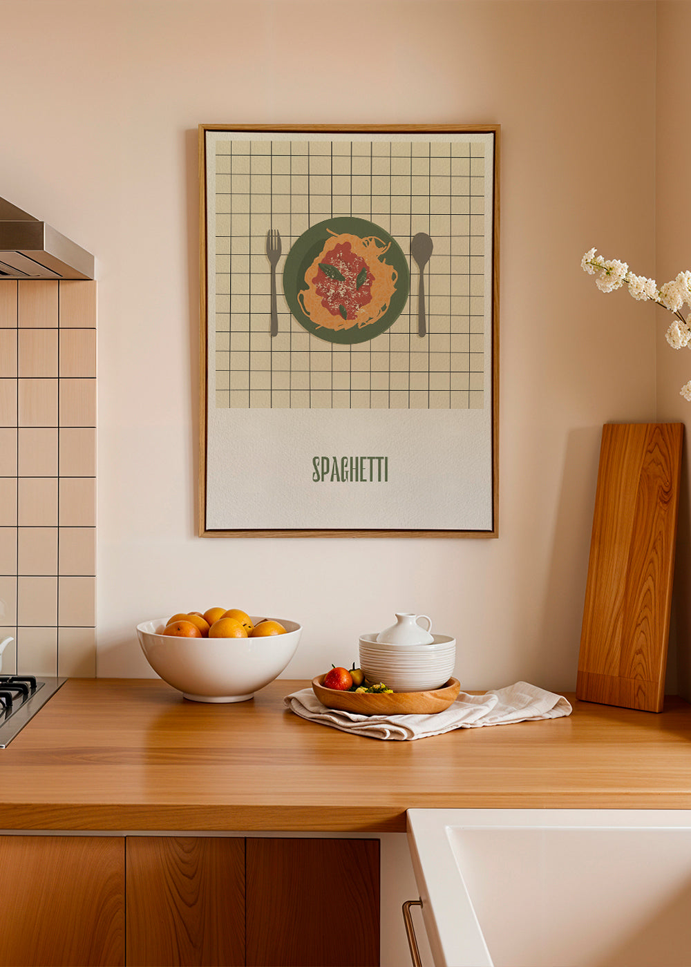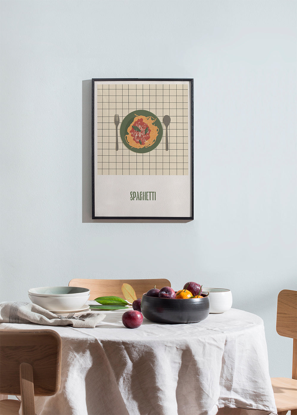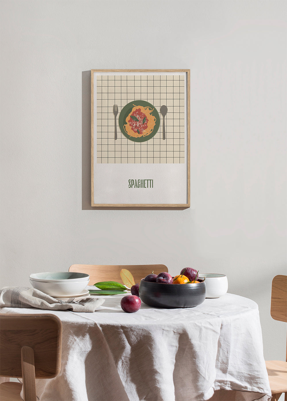 Beautiful poster inspired by the collection of food posters, created by Nerea Ramírez, with touches of green, and in vertical position. Decorating your kitchen with prints and posters is trendy, and this piece is the perfect way to do it. Give your rooms a fresh look with art.