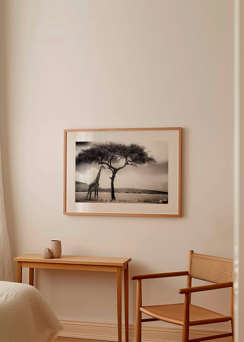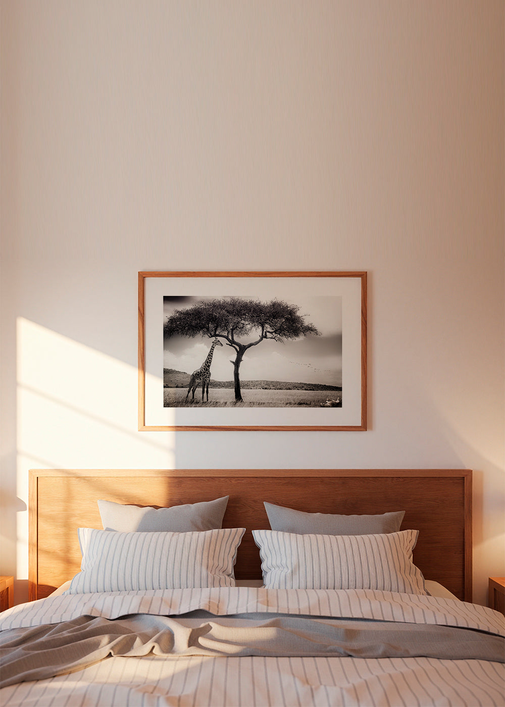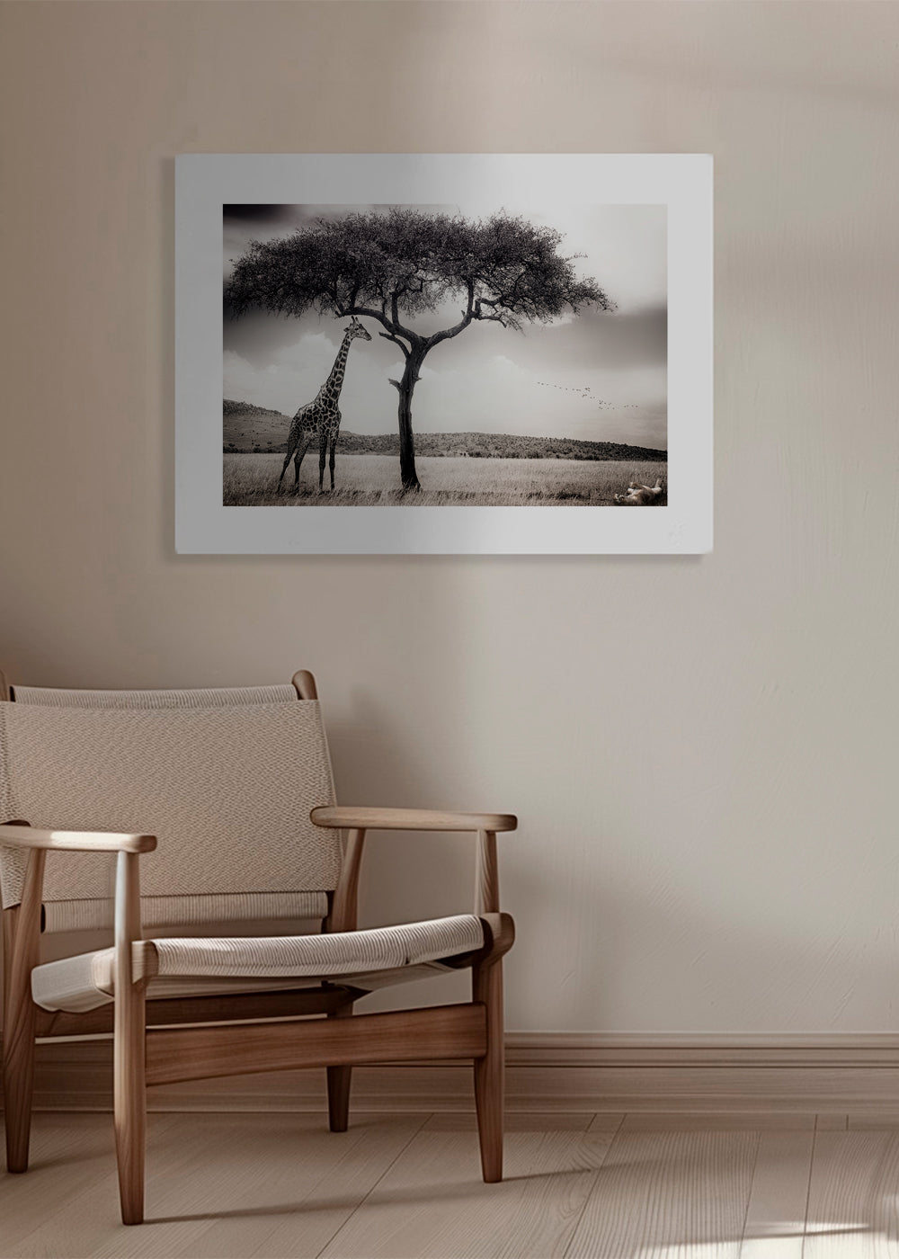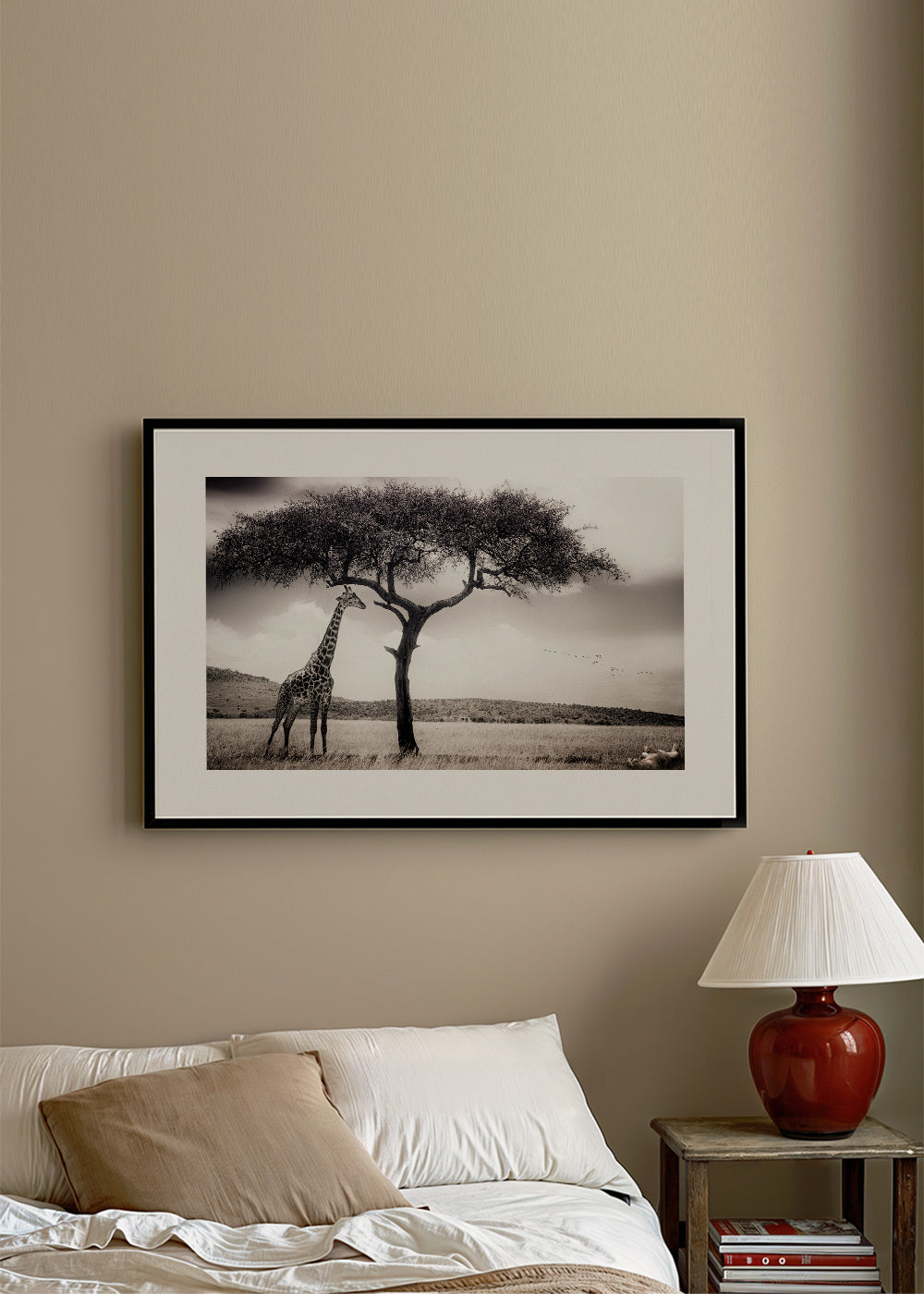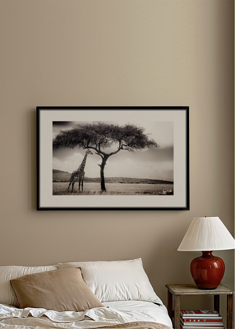 A print from our animal wall art category, with tones of black, and to hang in horizontal position. Nature is one of the best pieces of art around, don't you think? Combine our landscape prints for decoration that conveys freshness. It's always a good time to freshen up your home. This design includes a white strip around it to add contrast to the piece.