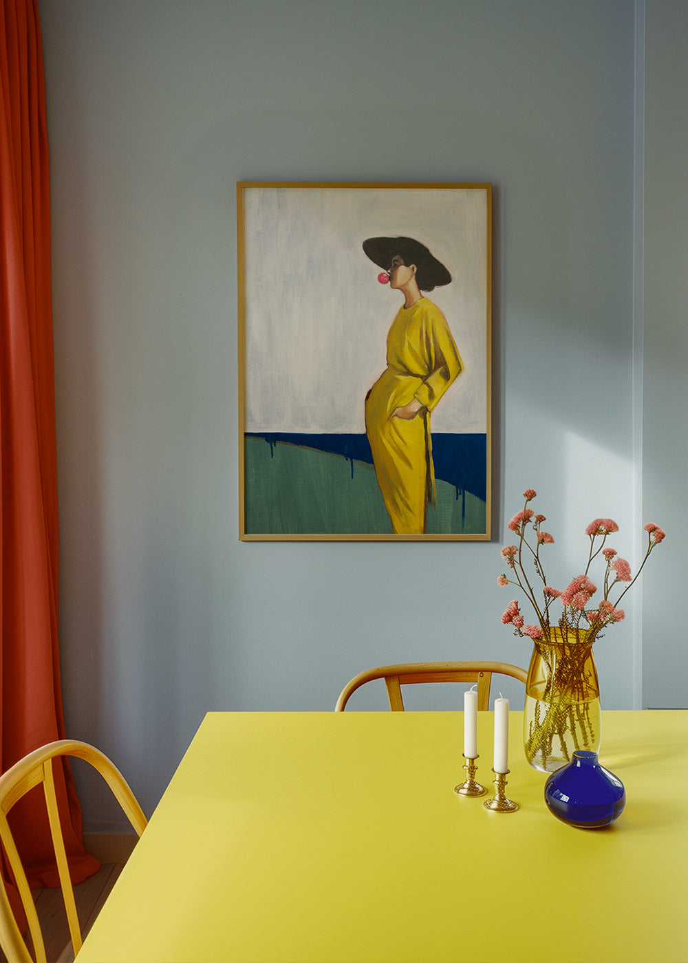 Beautiful poster in the style of our girls wall art, from the Alexander Grahovsky collection, with shades of green, and vertical layout. A perfect piece for spaces bursting with art and creativity. Our drawings are perfect for decorating empty or boring spaces. Refresh a whole room by just adding a few posters on the walls.