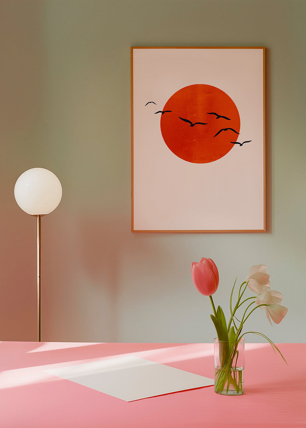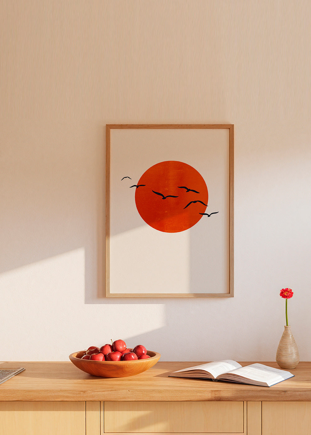 A print from the birds wall art collection, by creative artist Kubistika, with touches of red, and to hang in vertical position. Nature in all its splendour, landscape prints convey a sense of calm. Forget about boring walls.