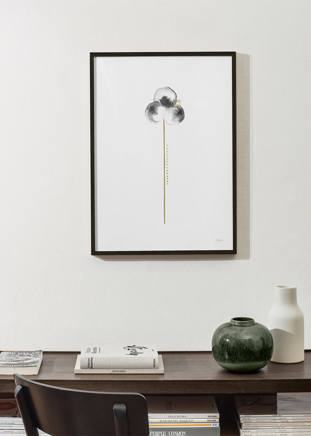 A poster from our repertoire of botanical prints and wall art, from the Fabiana Silveira collection, with tones of black, and facing vertically. The drawing is simple and clean, so you can pair it with other illustrations for an artistic composition. Choose the size that best fits your decor.