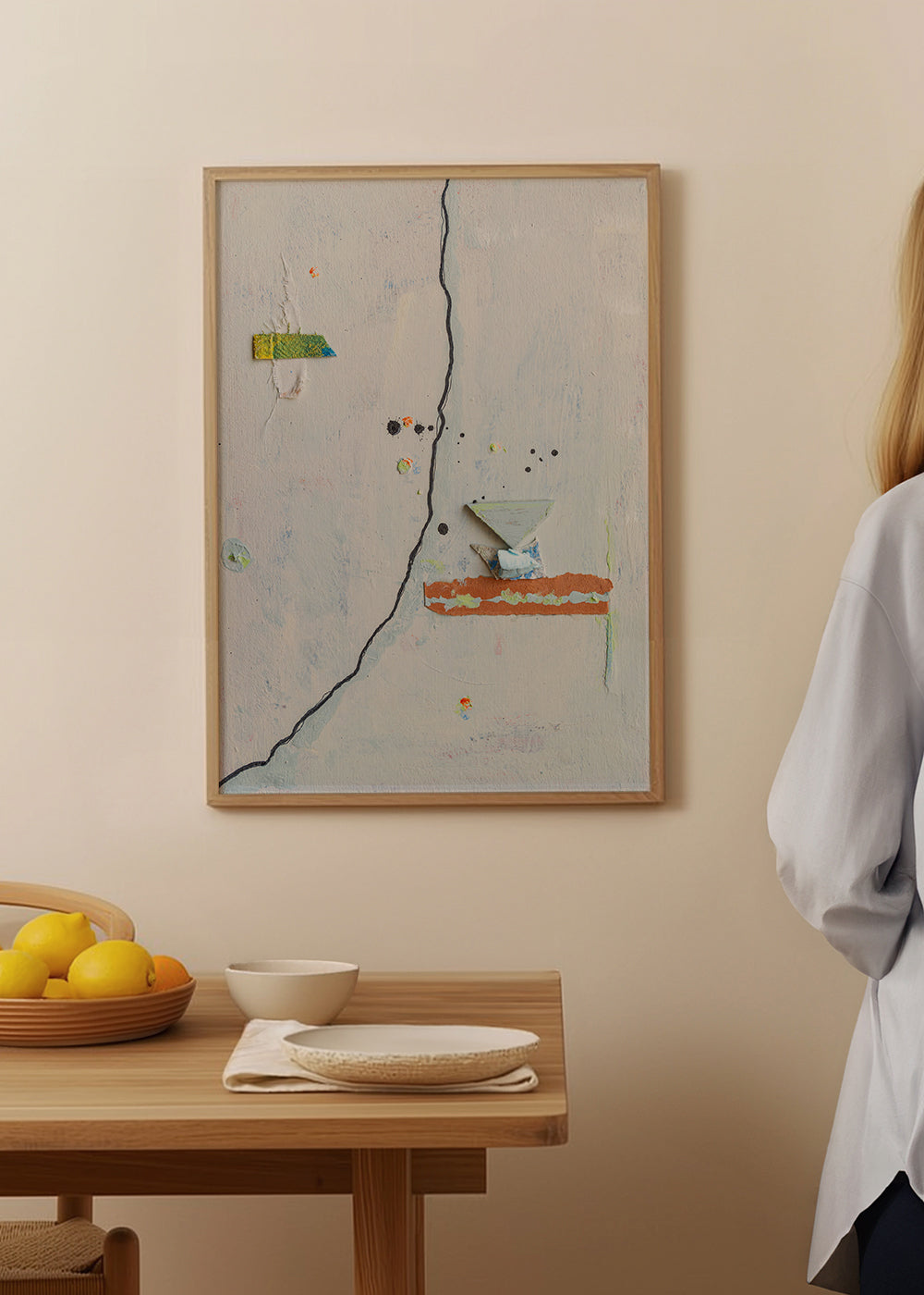 Movement without form. A work Crafted by the renowned Elena Camacho Art. Showcasing beiges vibrancy featuring a vertical design. It is an abstract artwork that will give your spaces a modern touch. Bring life to your walls