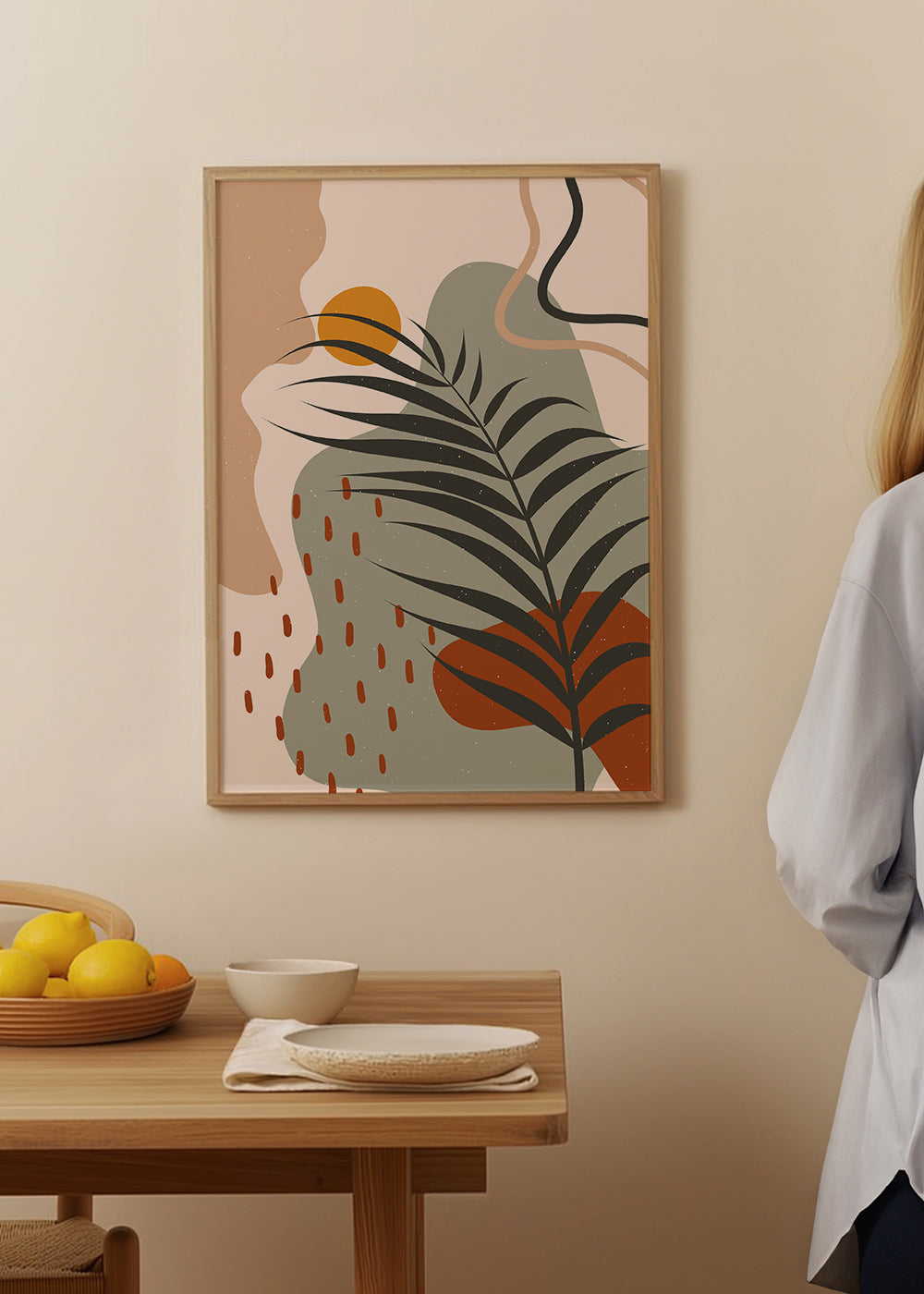 A print from our botanical prints and wall art series, from the Essentially Nomadic collection, with red, and to hang in vertical position. Forget about watering the plants and start decorating with botanical prints. There are no ugly or beautiful walls, just empty or full ones.
