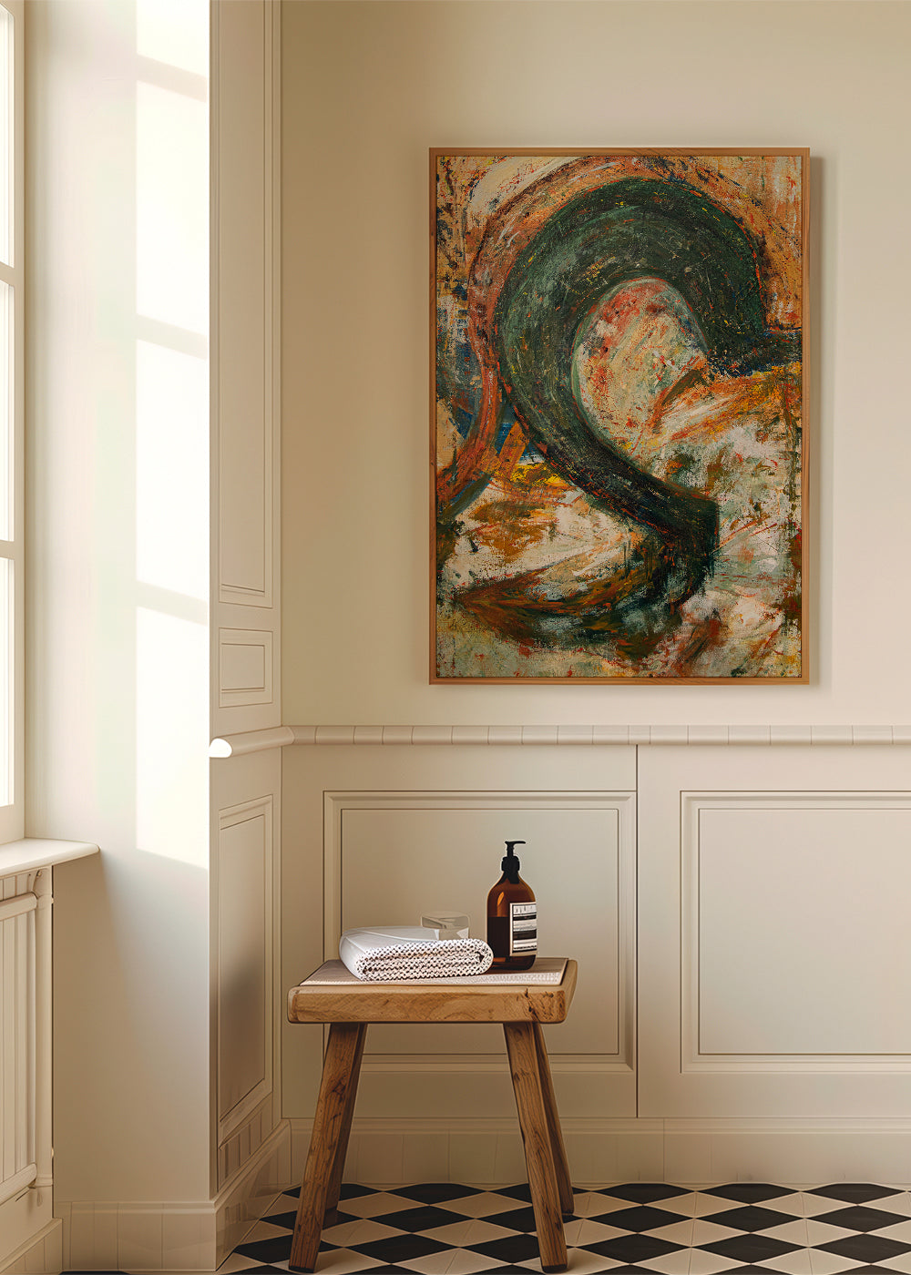 Beautiful print from the abstract wall art and prints series, by the artist Elena Camacho Art, with multicolor pigments, and with vertical layout. Abstract art modernises any space and gives your decor a chic look. This is the print your wall has been looking for.