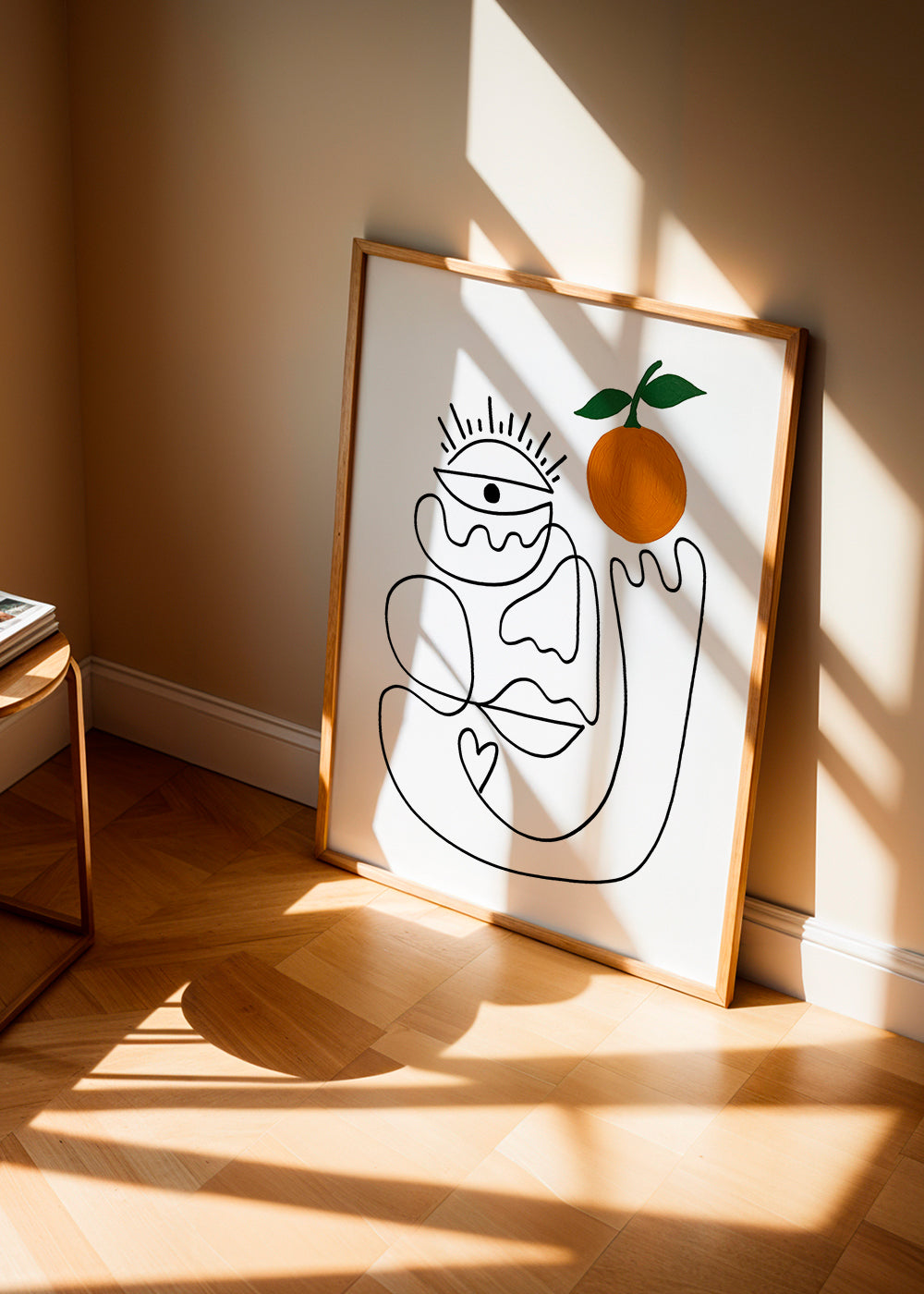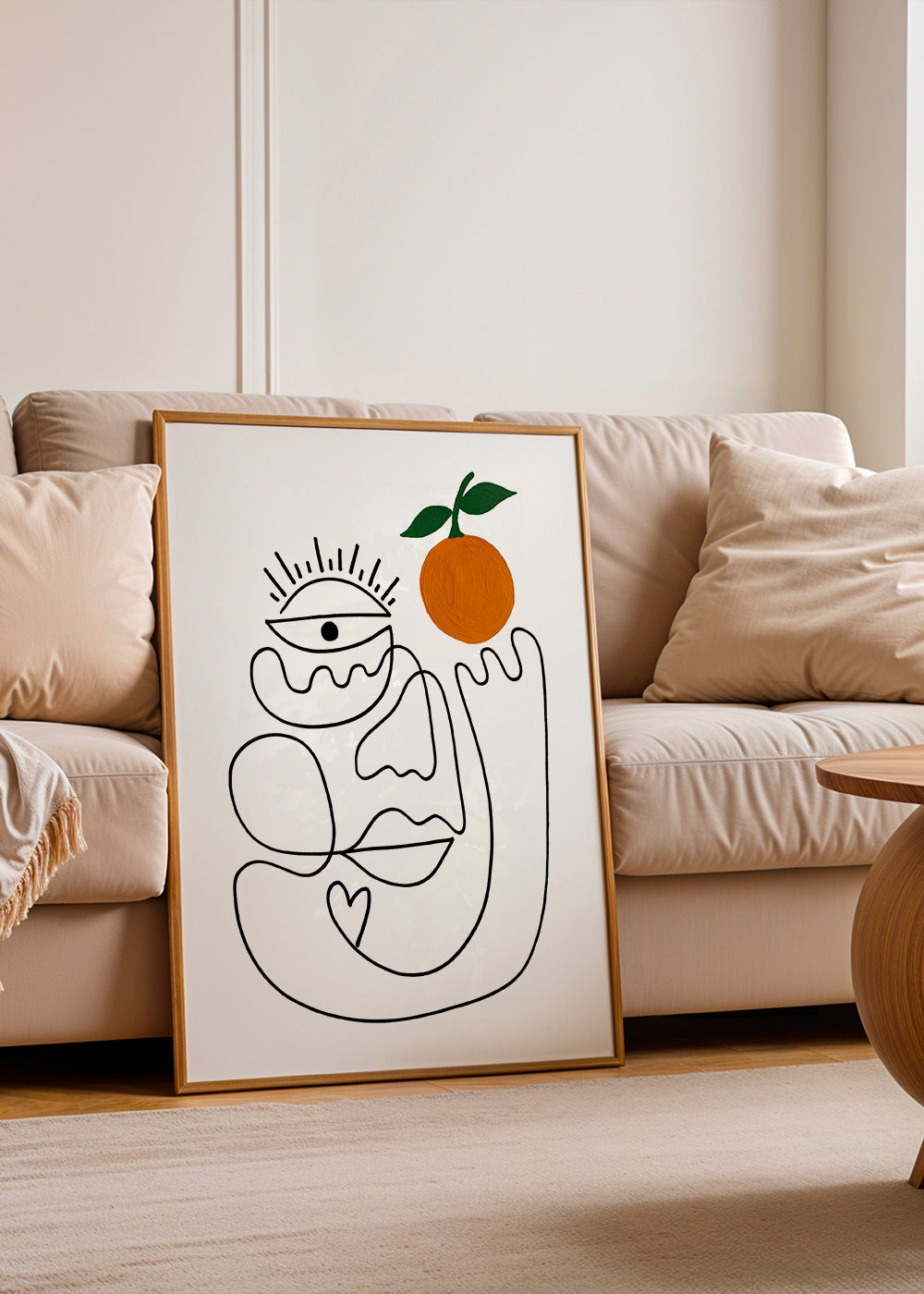 A design from our portrait faces posters series, created by Shatha Dafai, with orange, and vertical layout. Abstract art modernises any space and gives your decor a chic look. Let your walls tell a story.