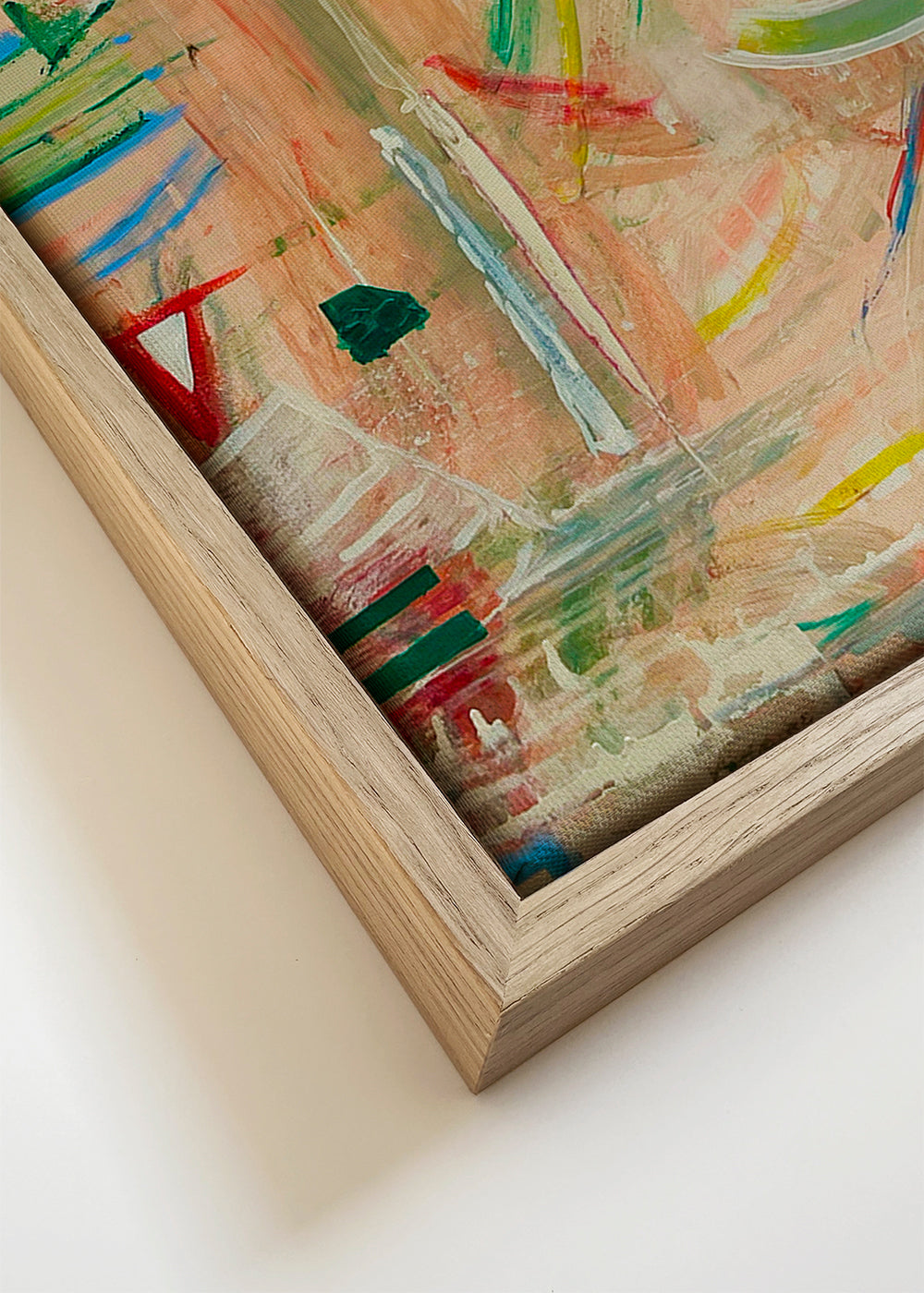 If you select the passepartout option, we will add the white matt board to the frame, and we will reduce the design of the work. For example, if you select a print size 20x28 in, with an oak colored frame and passepartout, we will reduce the design of the print to the previous size (16x20 in). In this way, it will adapt perfectly to the inside window of the passepartout.