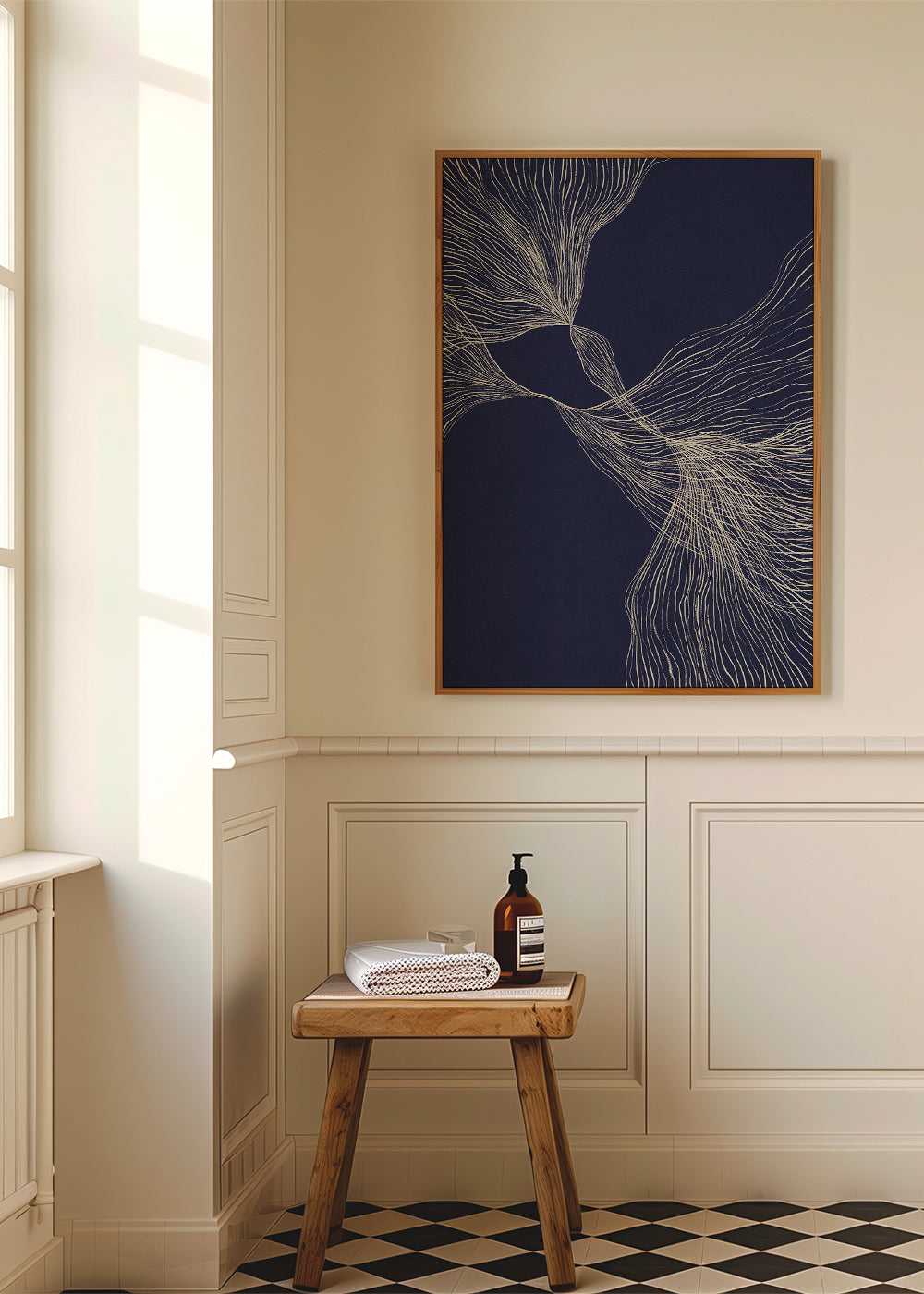 A design from the abstract wall art and prints category, from the mind of 1x, with tones of blue, and with vertical layout. If you want to add some style and originality to your decor, this abstract design will help give a cutting-edge touch to the walls of your home. Elegant walls for chic homes.
