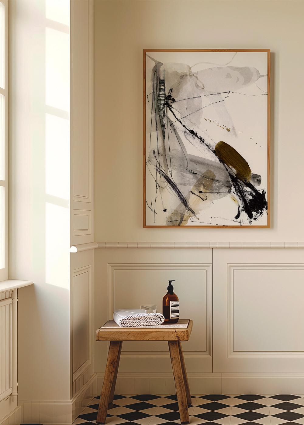 A poster from our abstract wall art and prints collection, made by 1x, in tones of grey, and to hang in vertical position. Abstract art modernises any space and gives your decor a chic look. Elegance inspired by art.