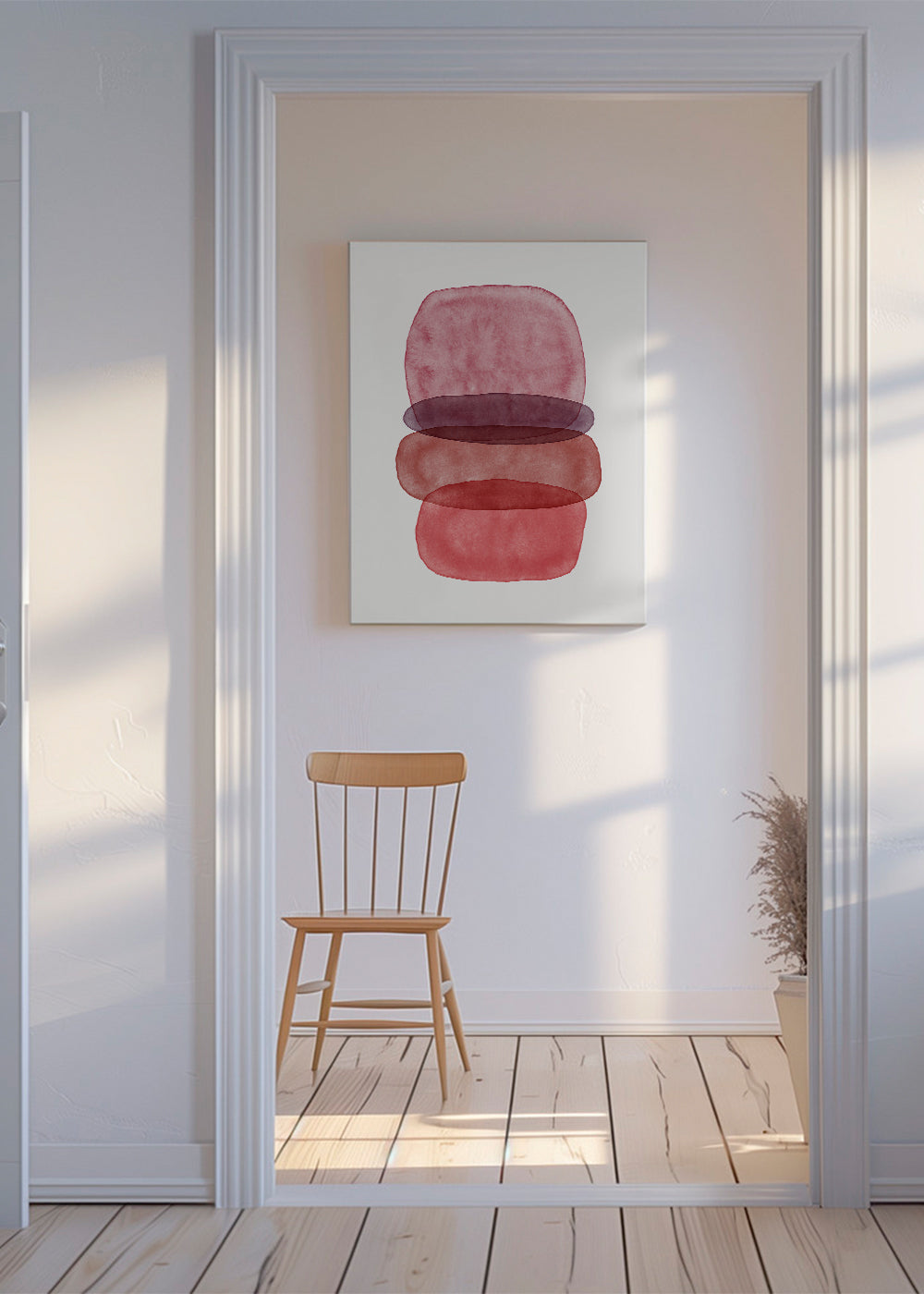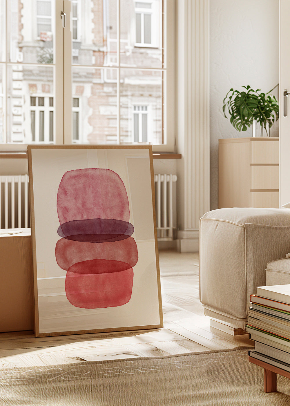 Beautiful poster from our geometric wall art and prints series, by Nouveau Prints, with red tones, and with vertical layout. The abstract, geometric shapes help create a casual, creative setting. Create the perfect wall decoration.