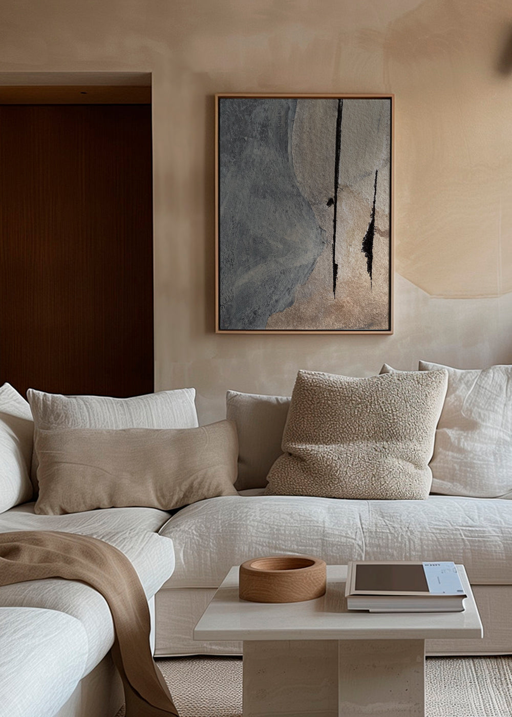 This piece from our repertoire of abstract wall art and prints, created by Elena Camacho Art, with tones of grey, and to hang in vertical position. It is an abstract artwork that will give your spaces a modern touch. The final touch for your home decor.