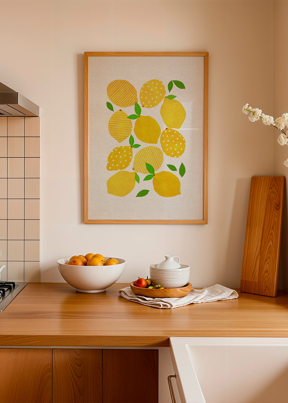 A print from the food posters series, from the mind of Orara Studio, with yellow tones, and perfect to hang vertically. This piece is perfect for decorating the kitchen in your home. Elegance inspired by art.