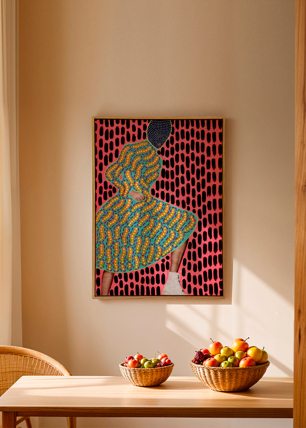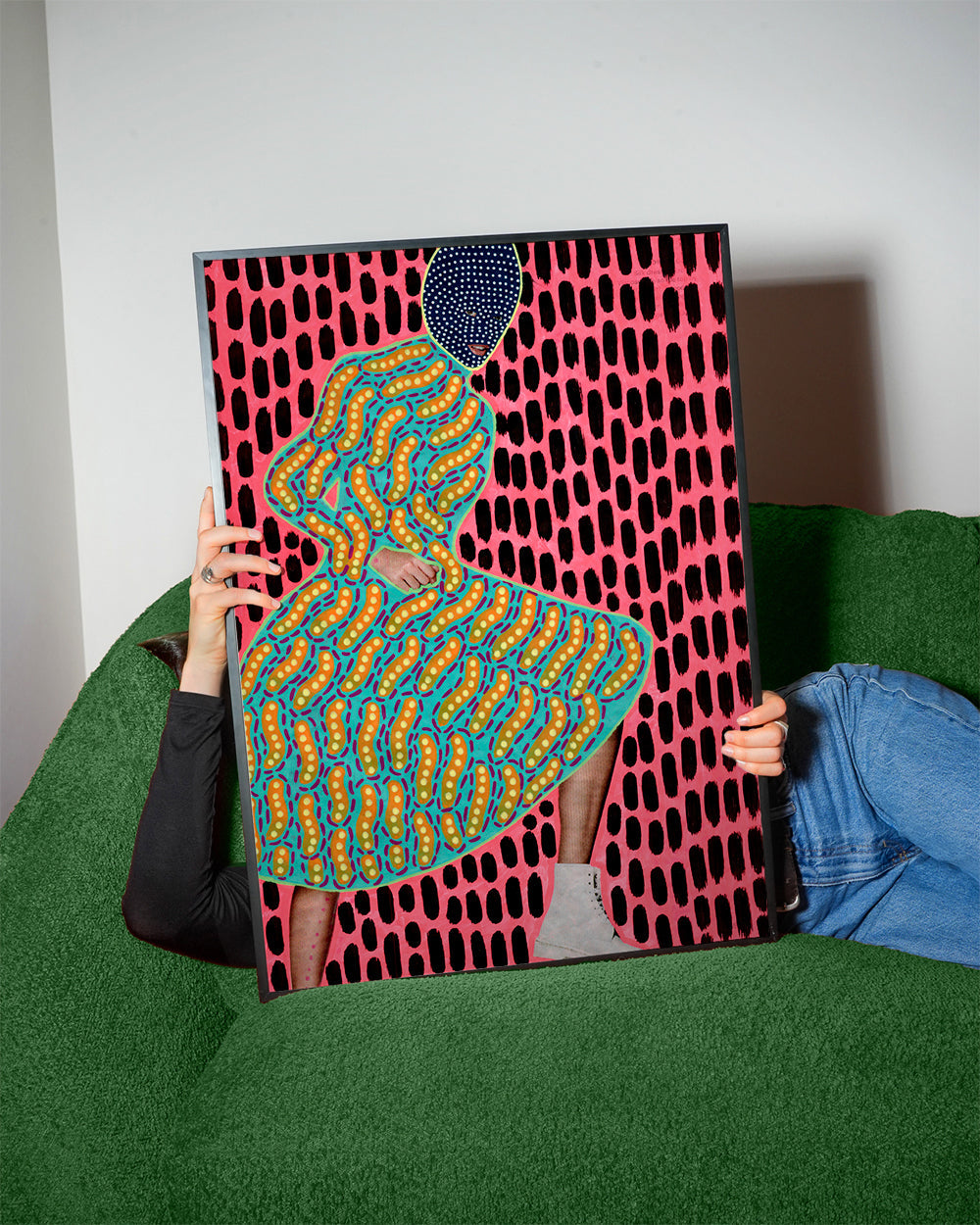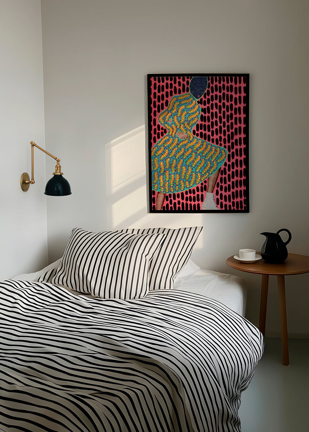 A piece from the girls wall art series, by creative artist 1x, with green pigments, and perfect to hang vertically. Illustrated posters are perfect for pairing with minimalist and abstract art. Fill your walls with prints.
