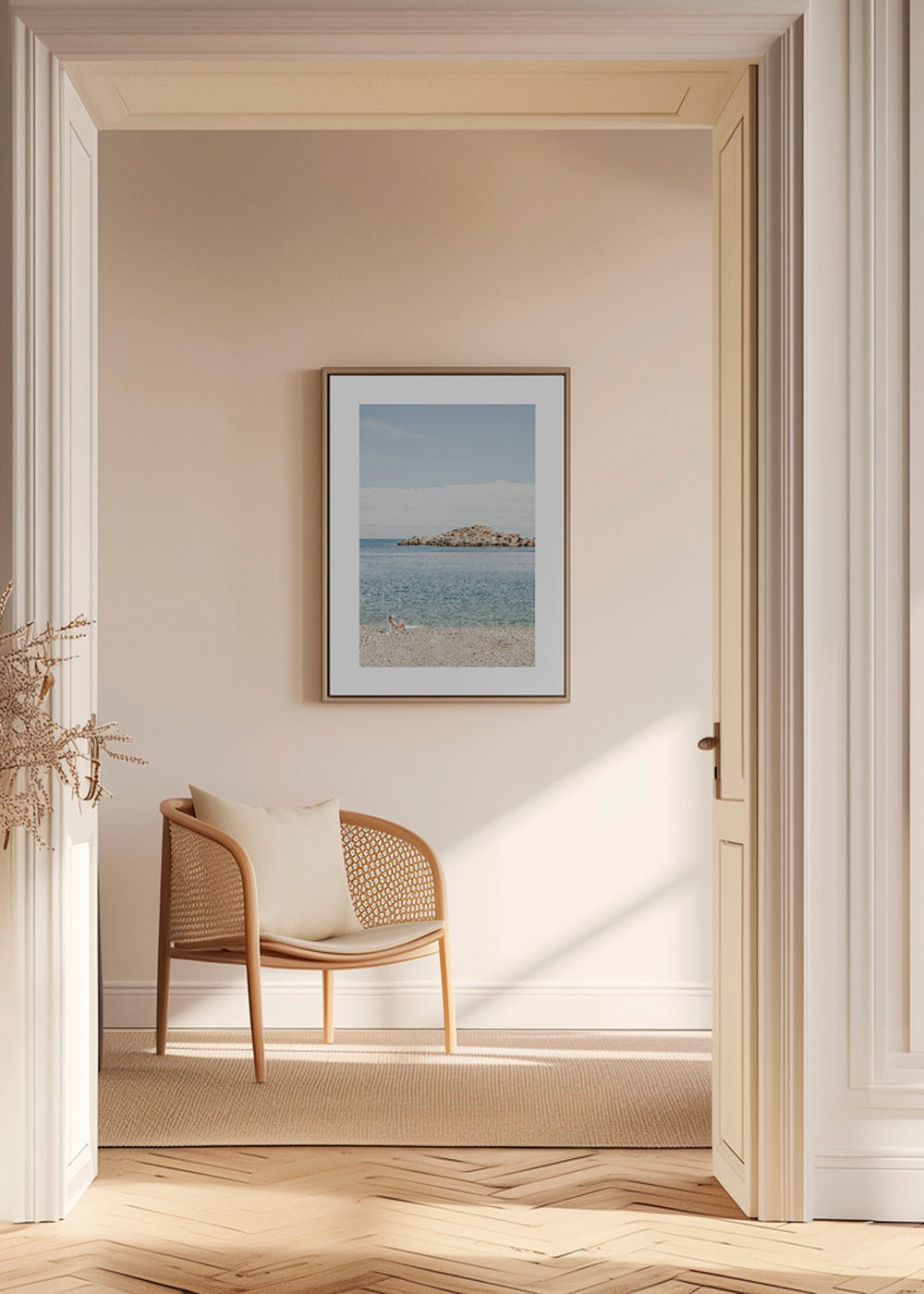 This print from the beach wall art series, an original by Ferran Feixas, with tones of blue, and to hang in vertical position. Landscape decoration brings a breath of fresh air to any room. Walls decorated with prints are the ultimate.
