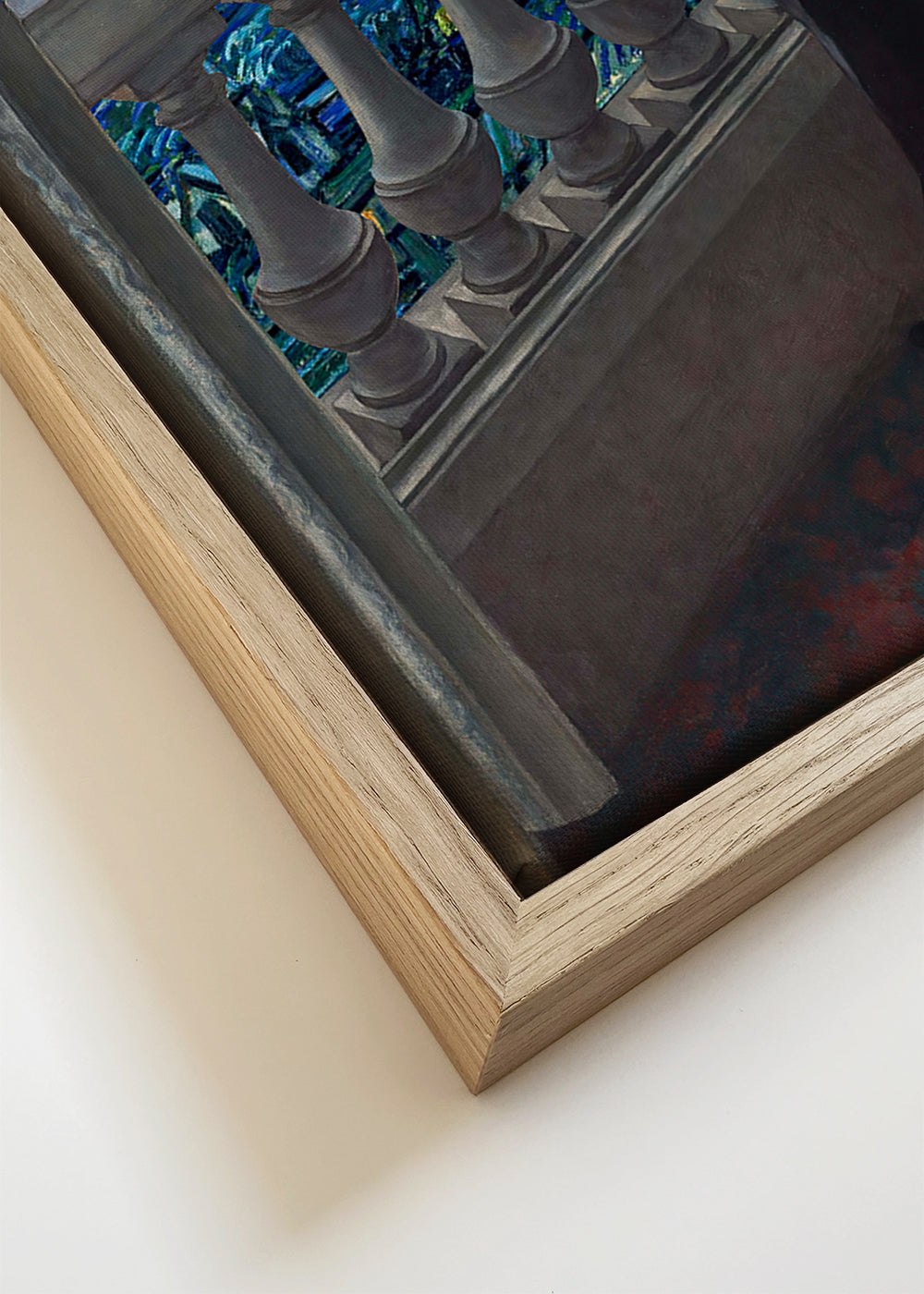 If you select the passepartout option, we will add the white matt board to the frame, and we will reduce the design of the work. For example, if you select a print size 20x28 in, with an oak colored frame and passepartout, we will reduce the design of the print to the previous size (16x20 in). In this way, it will adapt perfectly to the inside window of the passepartout.