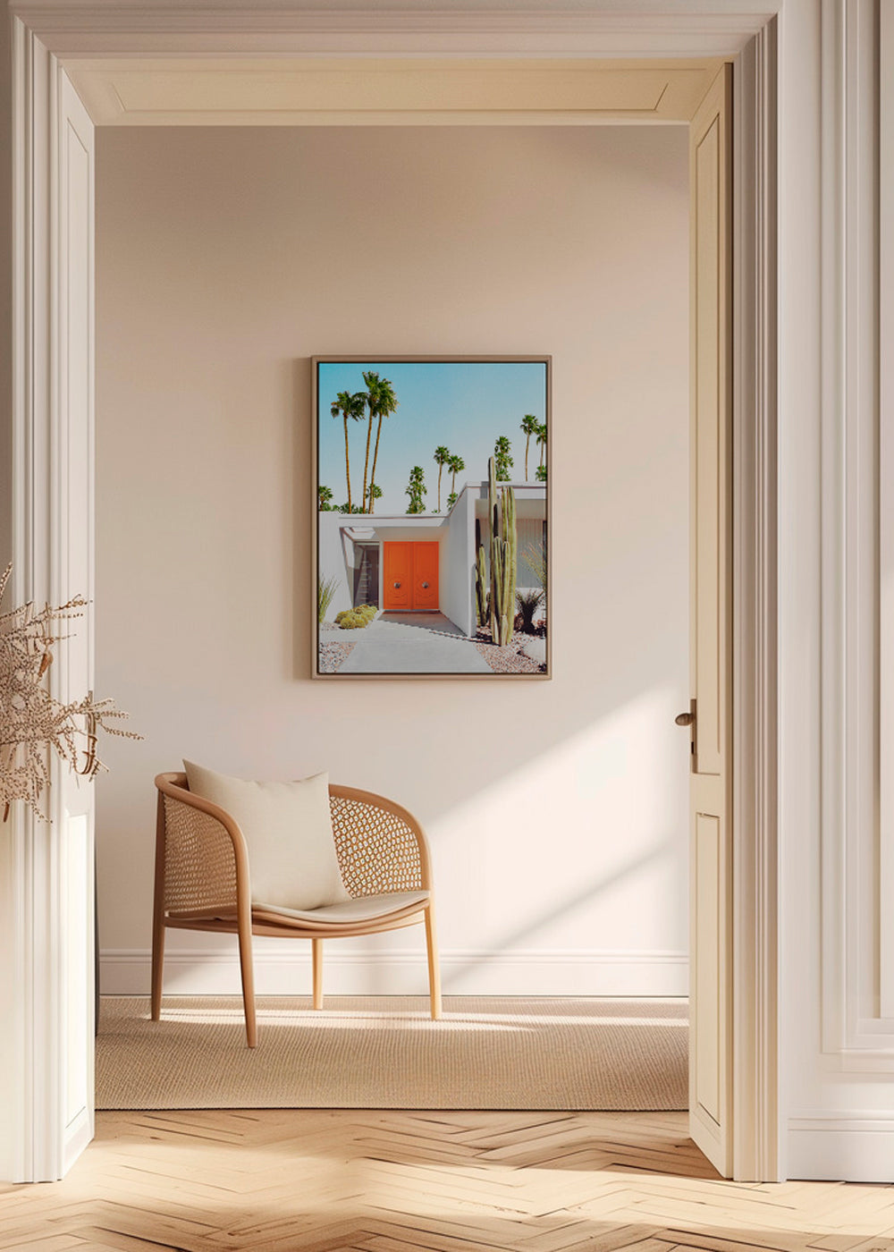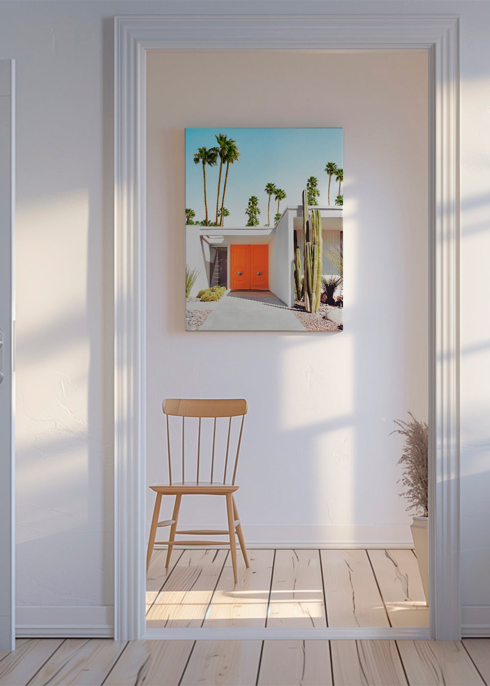 A print from our architecture wall art and prints collection, by the artist Gal Design, with shades of orange, and vertical layout. A beautiful landscape perfect for pairing with other nature prints. There are no ugly or beautiful walls, just empty or full ones.