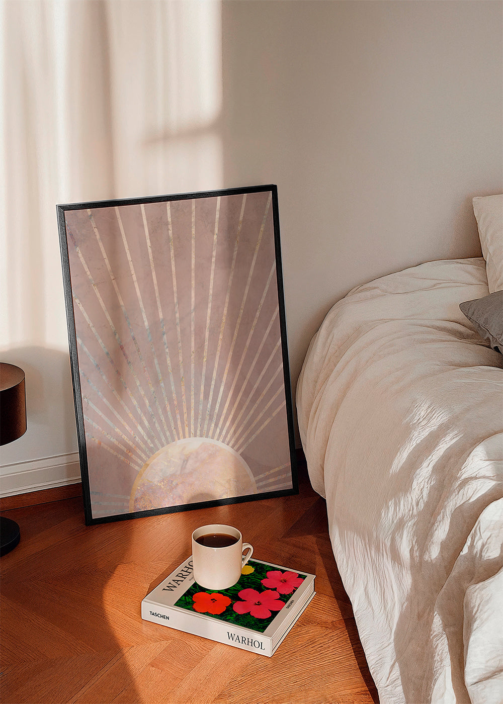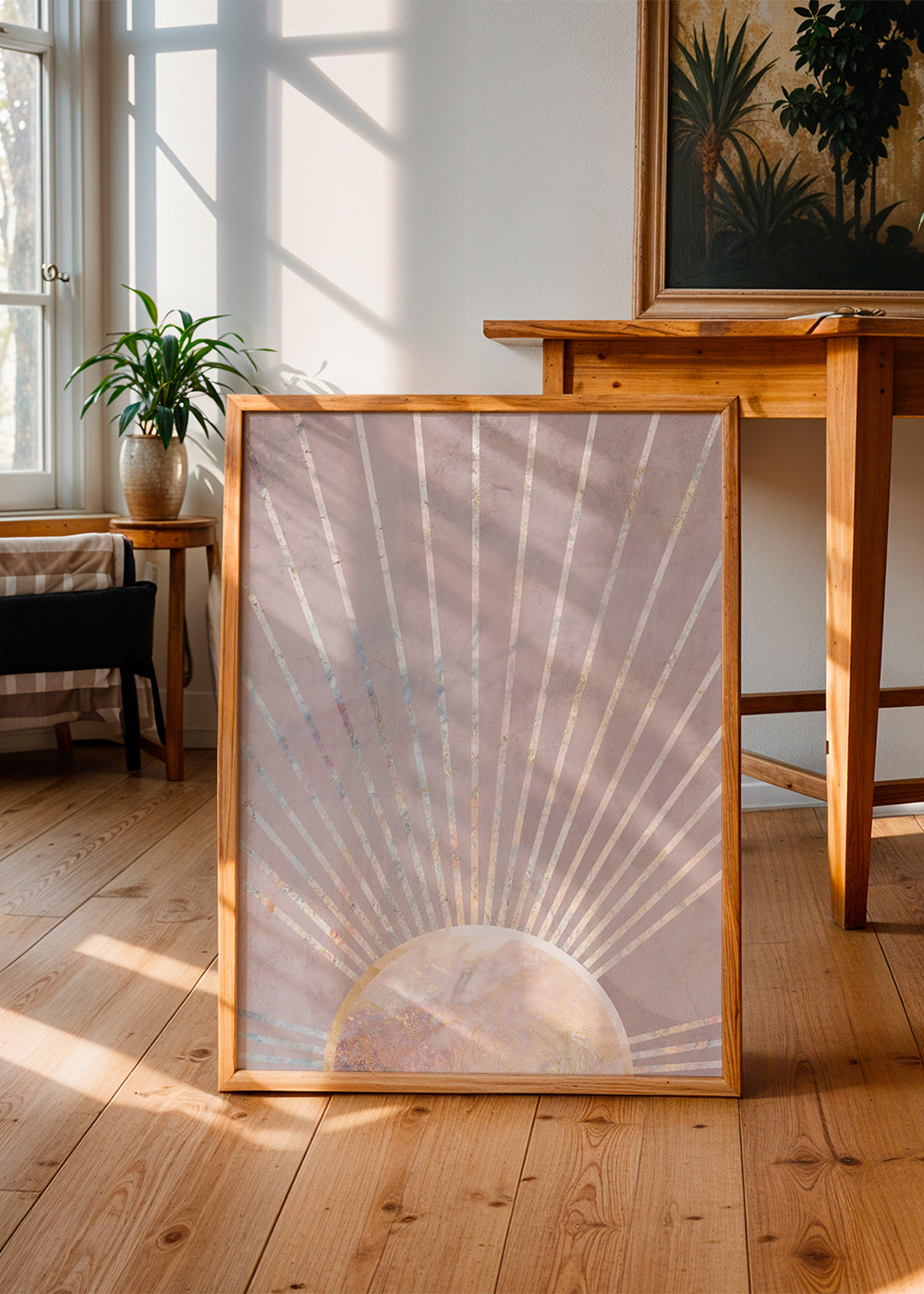A piece from our repertoire of sunrise and sunset wall art, created by Sarah Manovski Art, in pink shades, and to hang in vertical position. Illustrated prints give your home decor a touch of originality. A new look on your walls can bring a breath of fresh air to all your decor.