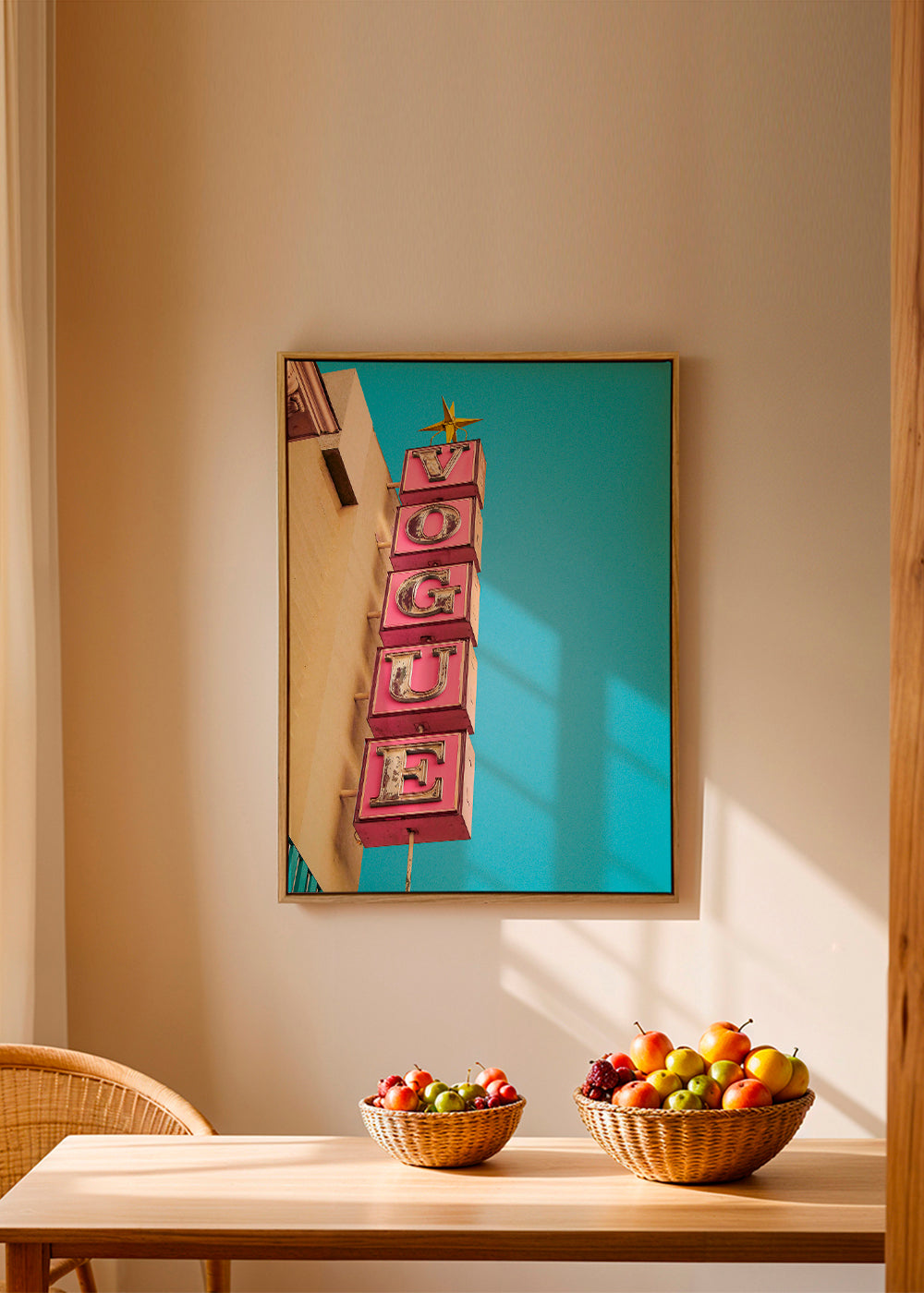 A design from our repertoire of vogue posters and prints, an original by 1x, with touches of blue, and with vertical layout. This photo is a perfect option to pair with other photo prints and create a gallery wall. Choose the size that best fits your decor.