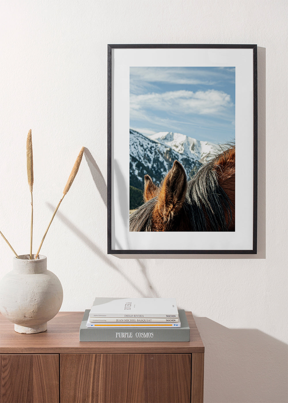 A poster from the horses wall art series, by the artist Ferran Feixas, in multicolor shades, and to hang in vertical position. Landscape decoration brings a breath of fresh air to any room. Transform your spaces with art.