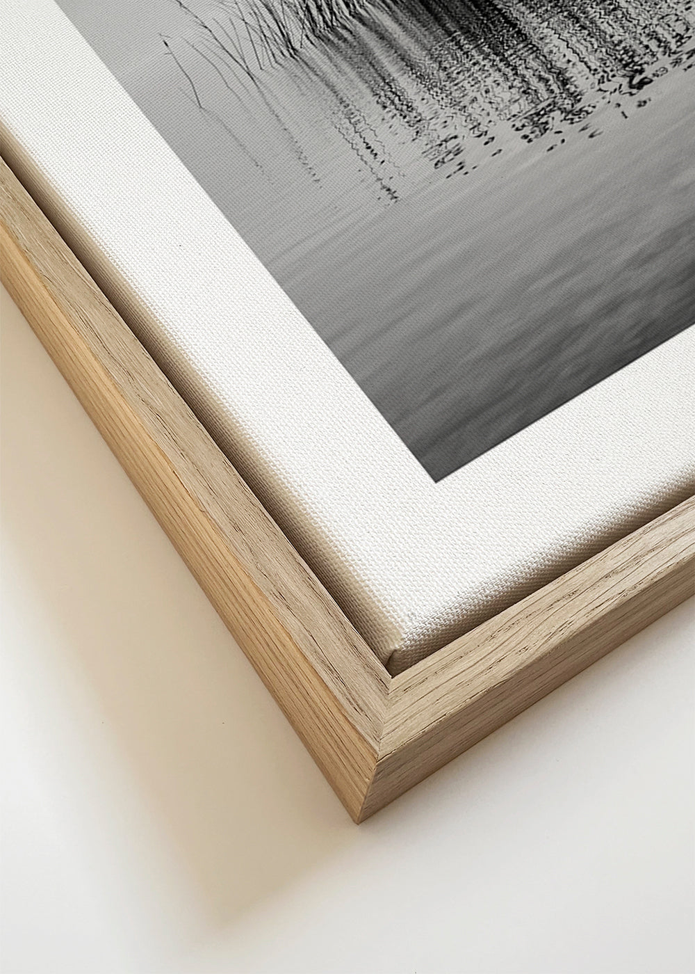If you select the passepartout option, we will add the white matt board to the frame, and we will reduce the design of the work. For example, if you select a print size 20x28 in, with an oak colored frame and passepartout, we will reduce the design of the print to the previous size (16x20 in). In this way, it will adapt perfectly to the inside window of the passepartout.