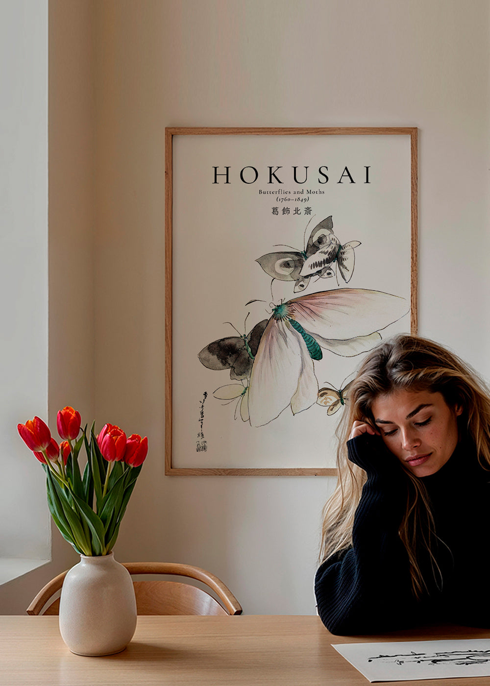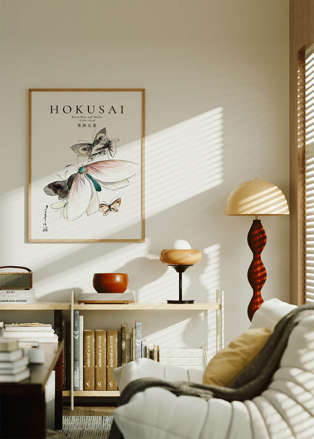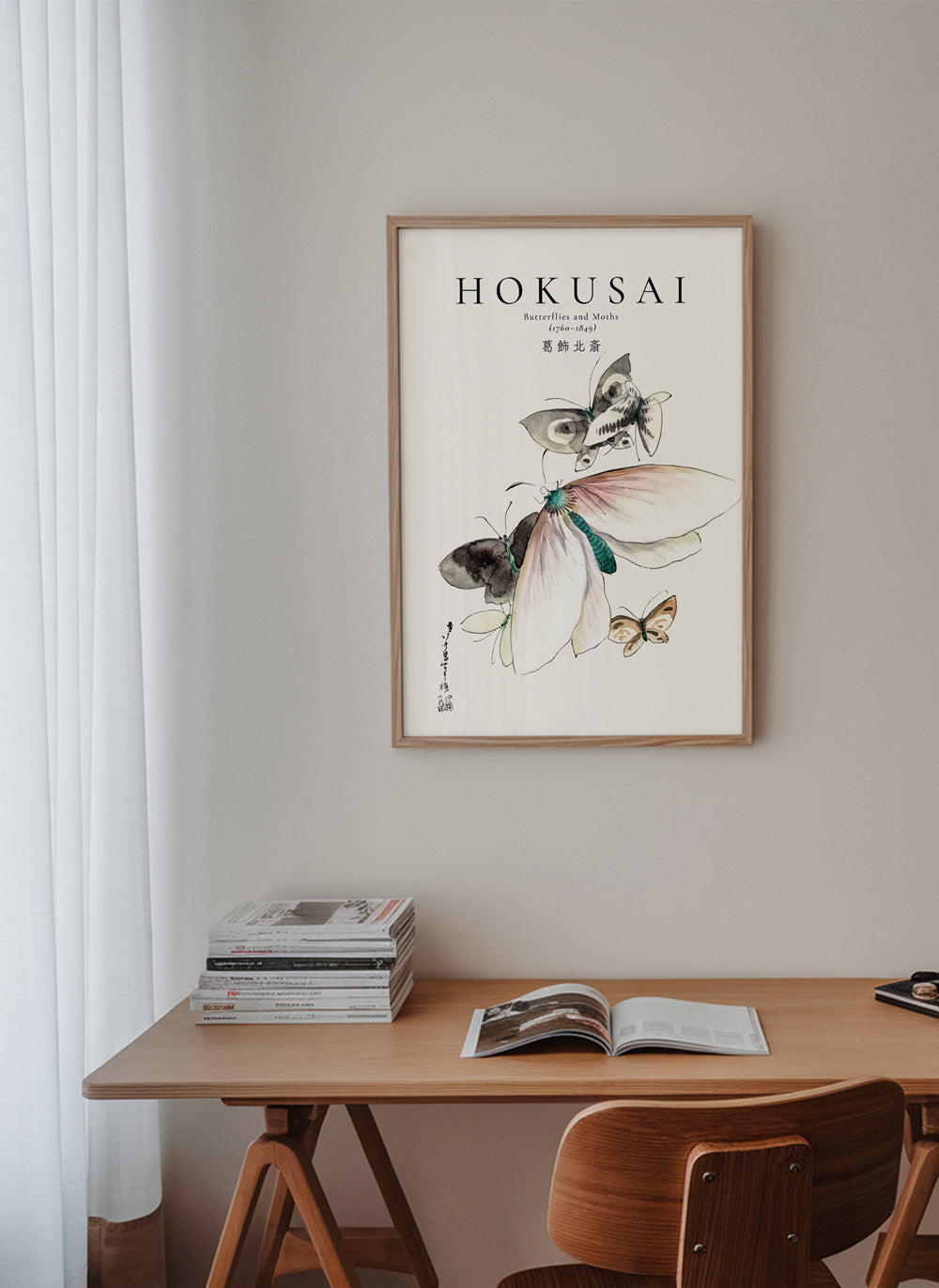 Black and white wall art Butterflies and Moths by Katsushika Hokusai