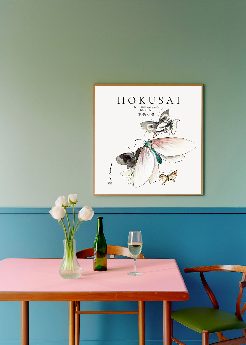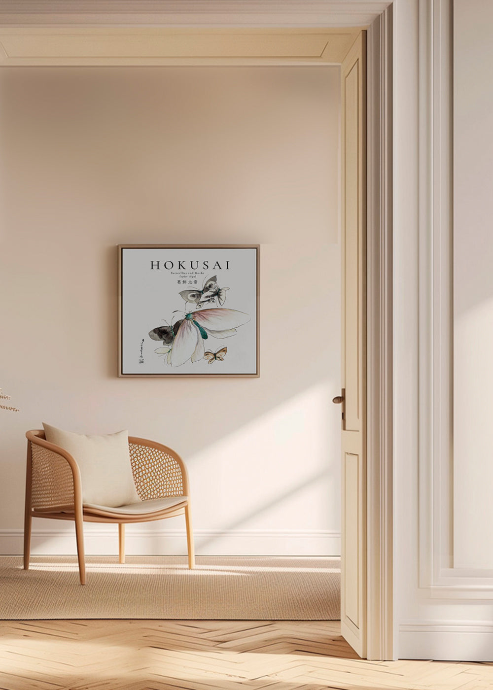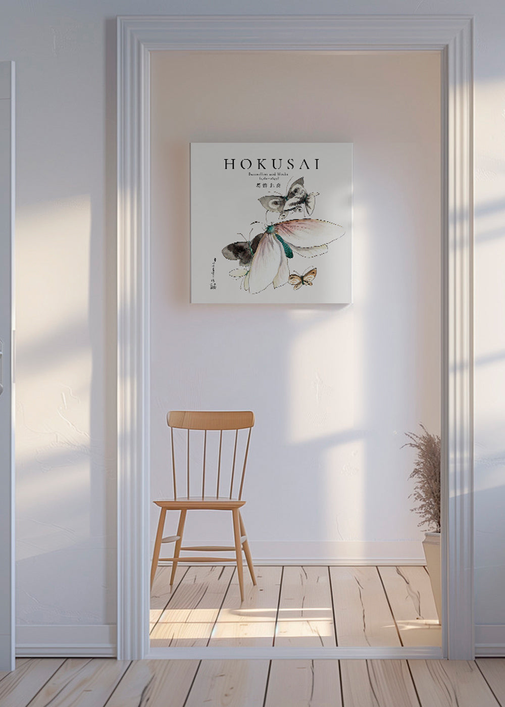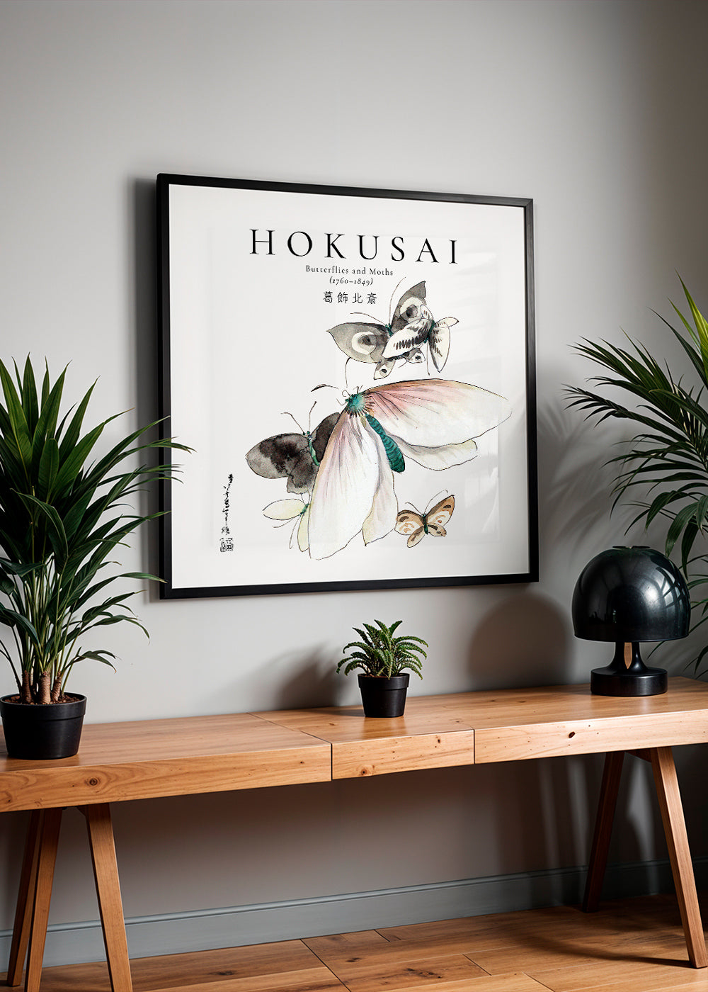 Black and white wall art Butterflies and Moths by Katsushika Hokusai - Square