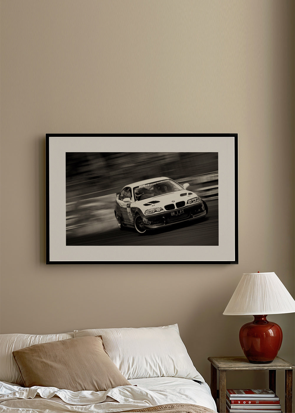 Beautiful print from our repertoire of cars posters and wall art, with black and white tones, and to hang in horizontal position. Photos to frame help make any home more modern. Refresh a whole room by just adding a few posters on the walls. This design includes a white strip around it to add contrast to the piece.