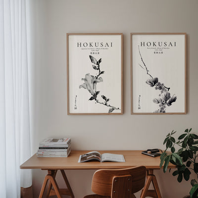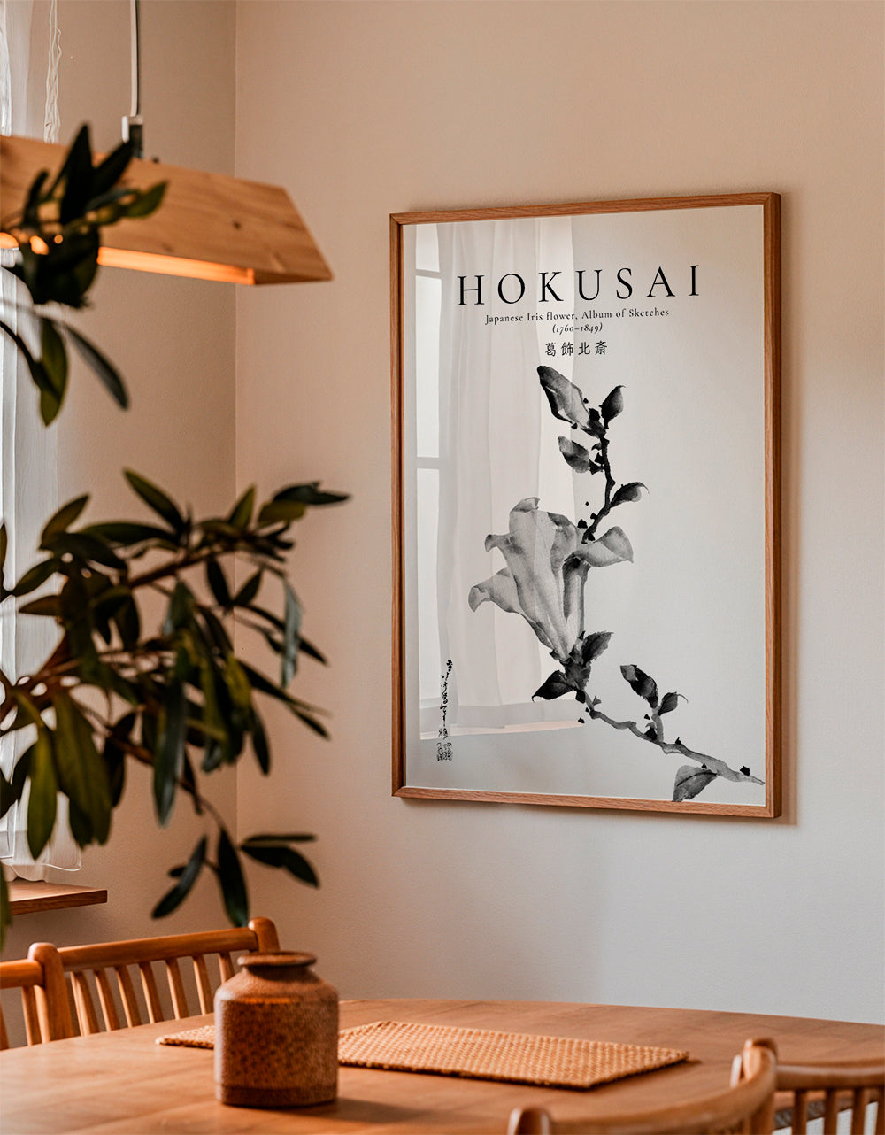 Black and white wall art Japanese Iris flower by Katsushika Hokusai
