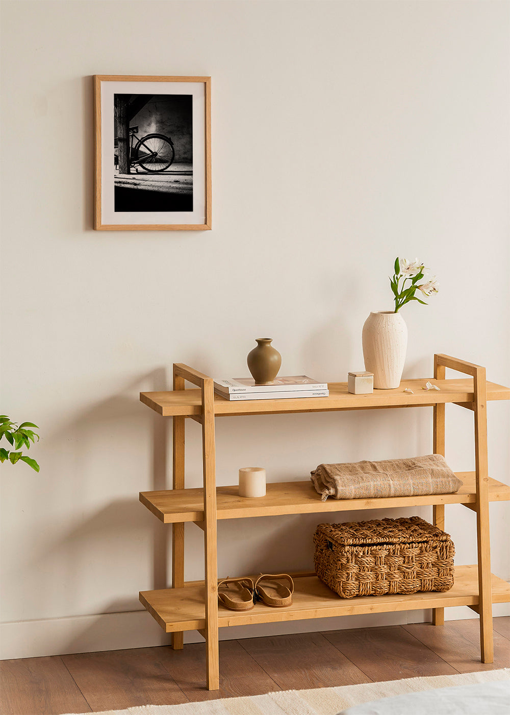 All our frames are manufactured in Spain. The white, black and oak frames are made of Ayous wood, and the oak ones are veneered in oak, while the metallic ones are made of aluminum.
