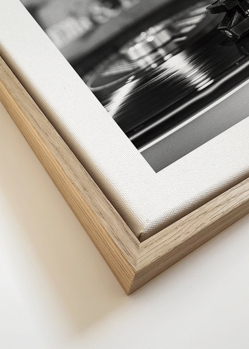 If you select the passepartout option, we will add the white matt board to the frame, and we will reduce the design of the work. For example, if you select a print size 20x28 in, with an oak colored frame and passepartout, we will reduce the design of the print to the previous size (16x20 in). In this way, it will adapt perfectly to the inside window of the passepartout.